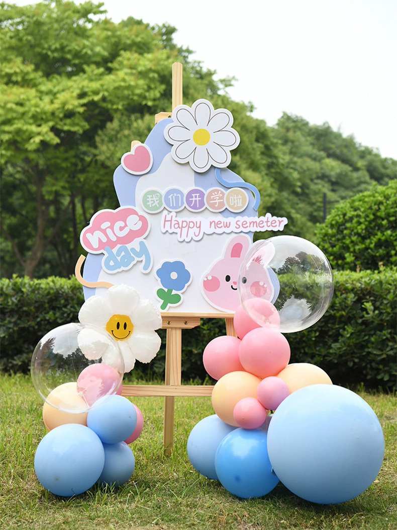 幼兒園開學典禮氣球KT板裝飾布置教室內拍照背景簽到板小學歡迎牌
