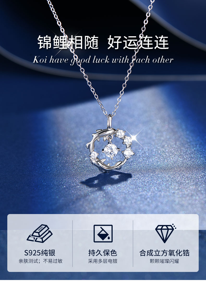 魚生有你純銀項鏈女輕奢小眾設計感錦鯉好運莫比烏斯圓環生日禮物