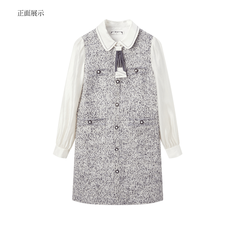 紫涵連衣裙兩件套女2023年冬季新款復古可拆卸針織馬甲翻領中長裙