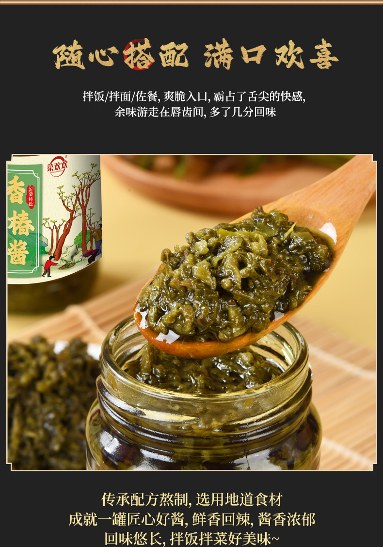 香椿醬沂蒙山特產油燜香春嫩芽醬辣椒醬拌飯拌面夾饃下飯咸菜即食