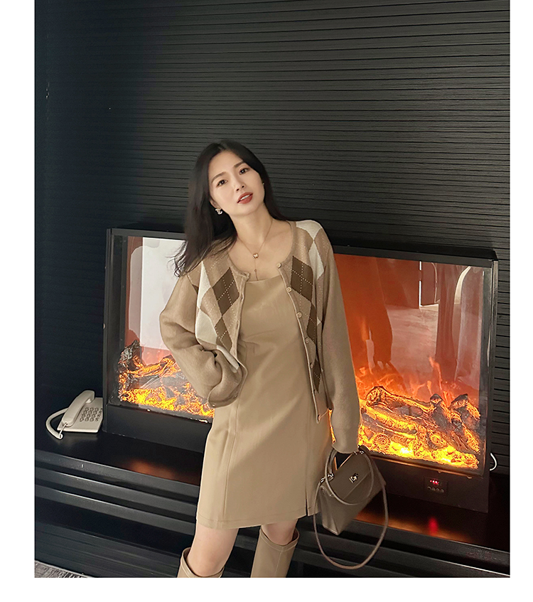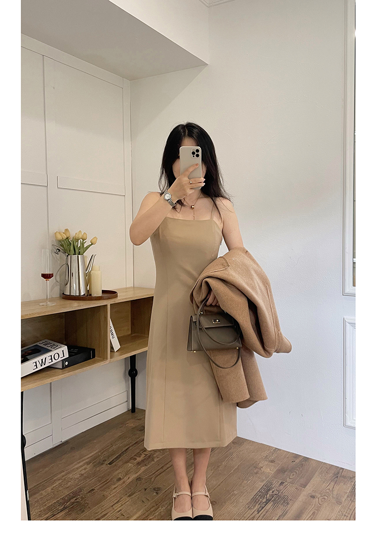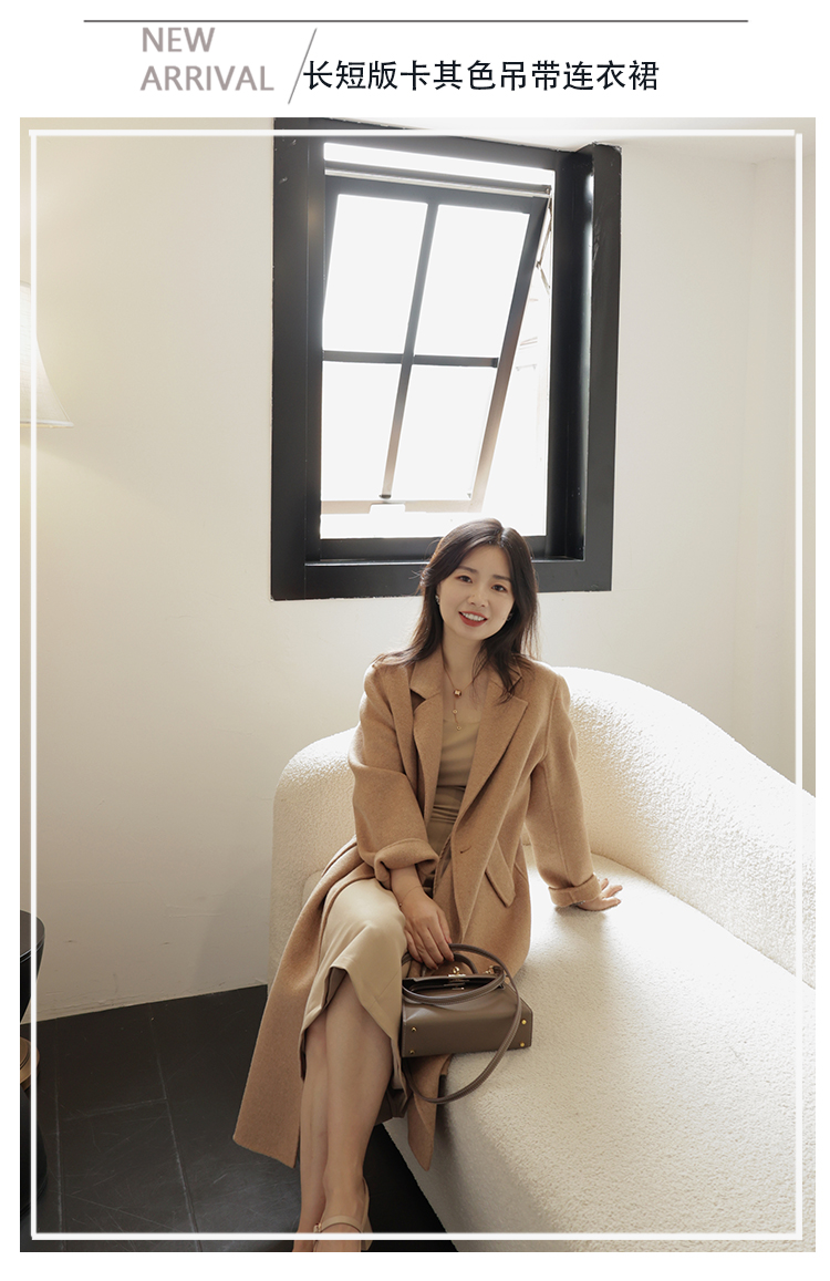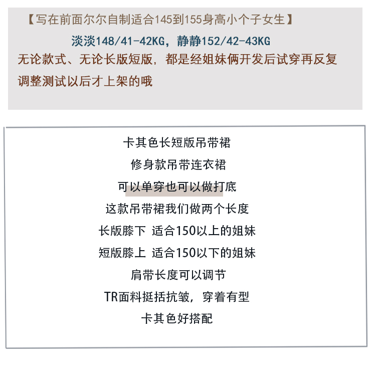 爾爾自制小個子吊帶連衣裙秋冬新品卡其色長短版通勤裙子