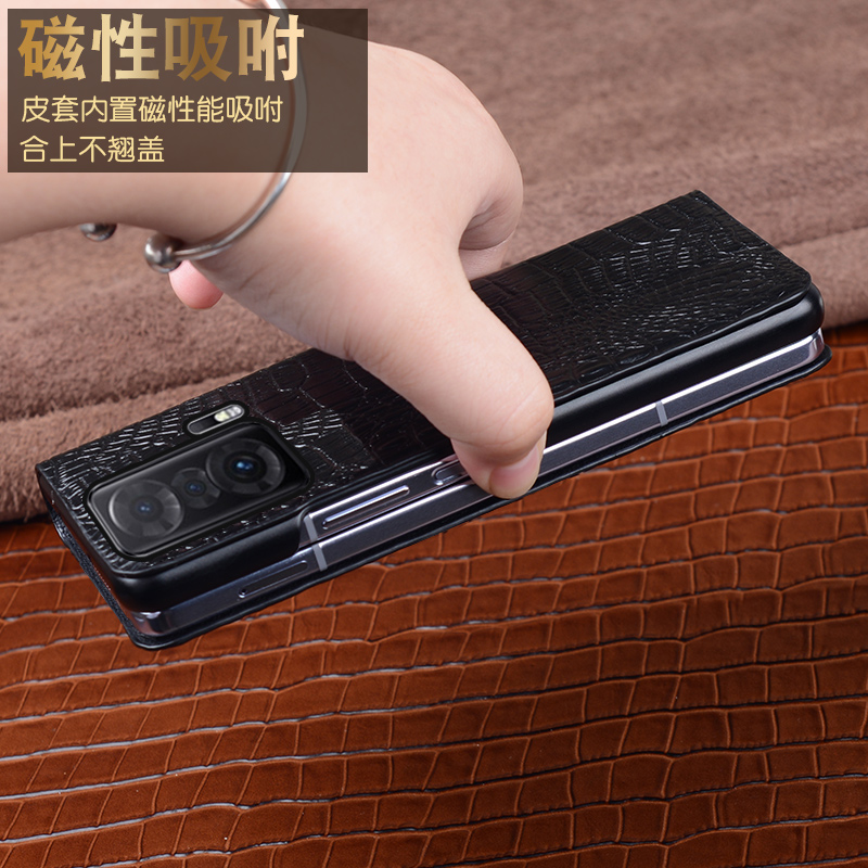沃比羅適用于榮耀MagicV手機保護套頭層牛皮商務新款MagicV真皮防摔折疊式翻蓋時尚輕奢magicv簡約高檔手機套