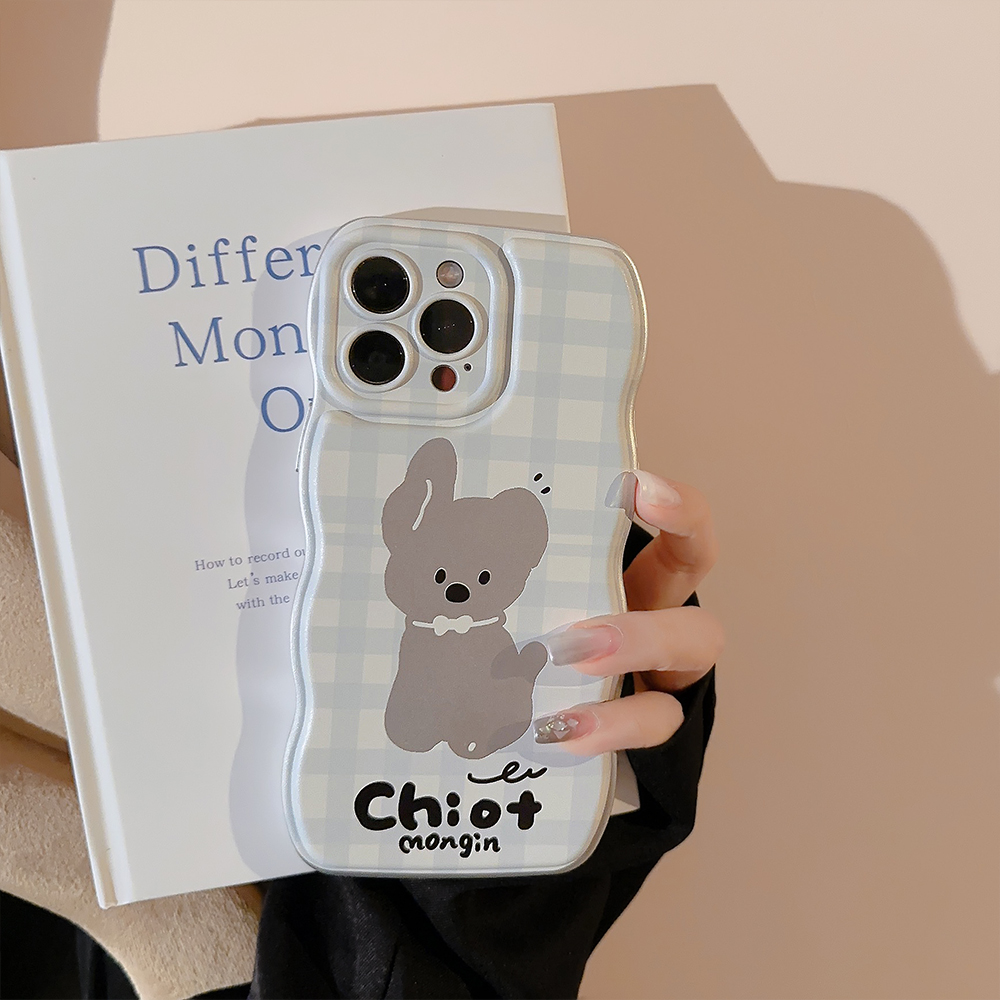 適用于蘋果15iPhone14promax氣墊波浪紋13pro粉白剪影小狗手珠手機殼12pro防摔蘋果11防滑新女款高級感保護套