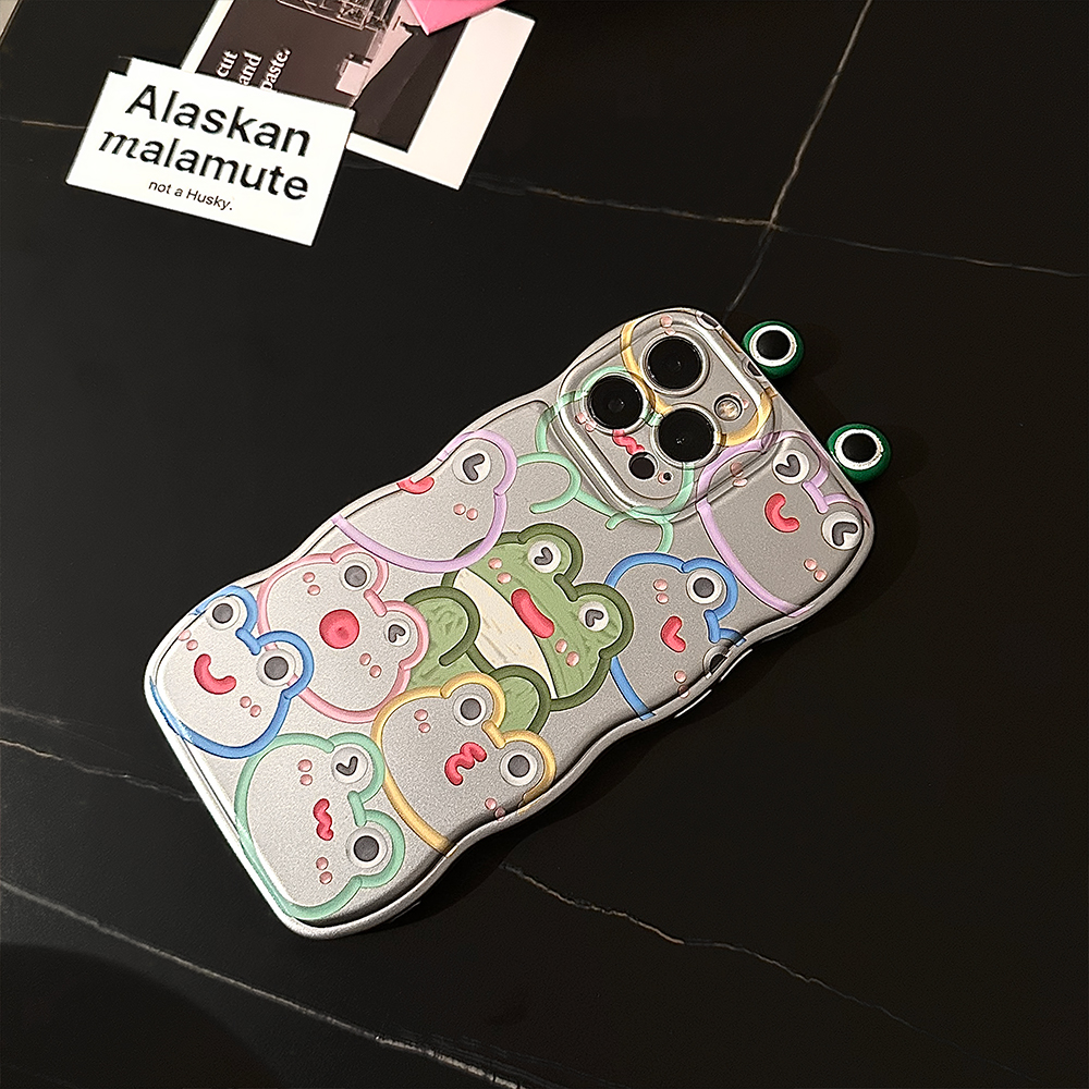 適用蘋果iPhone14promax氣墊波浪殼13pro滿屏青蛙藍格狗手珠手機殼12pro防摔iPhone11防滑新女款高級感保護套