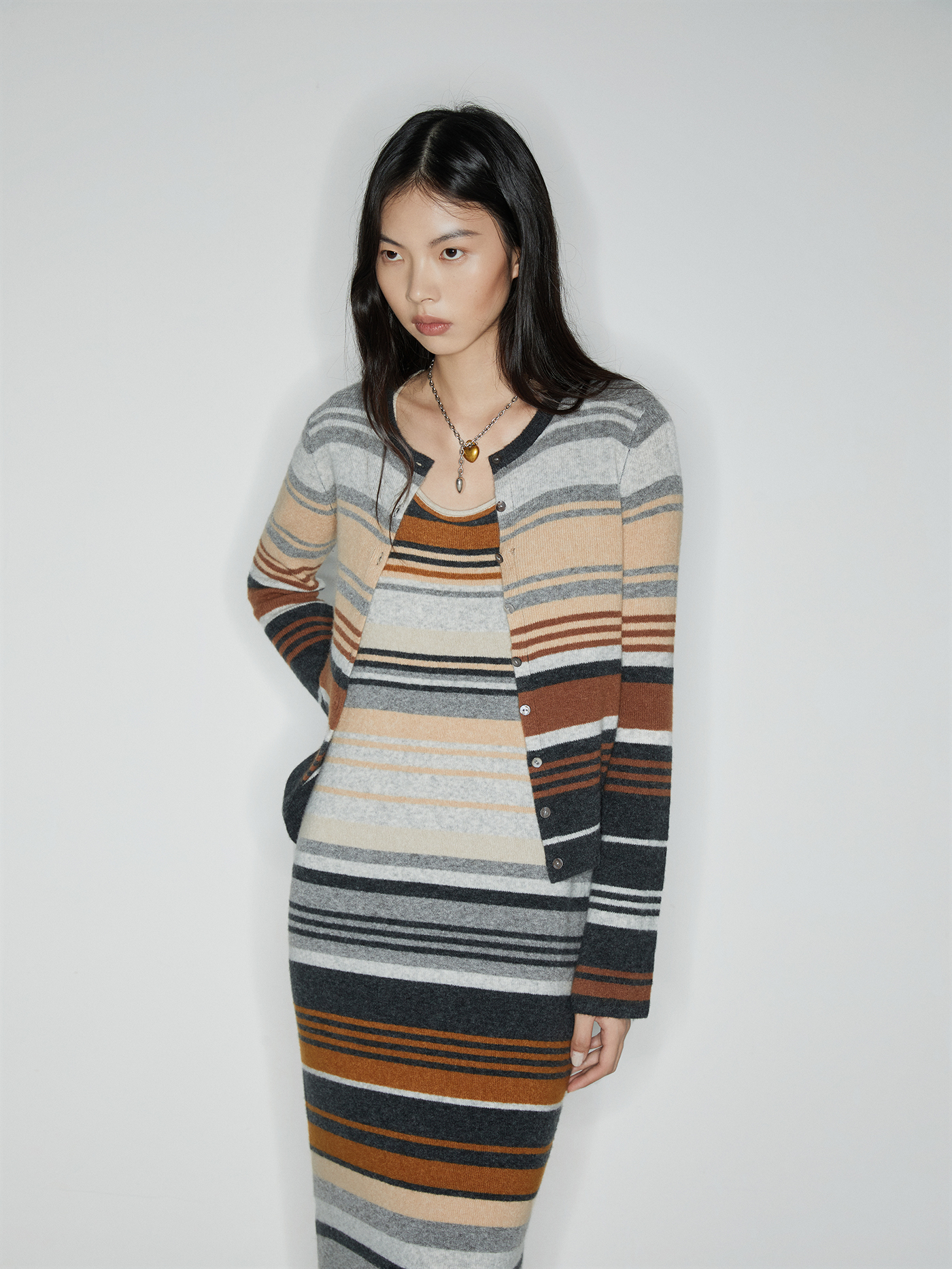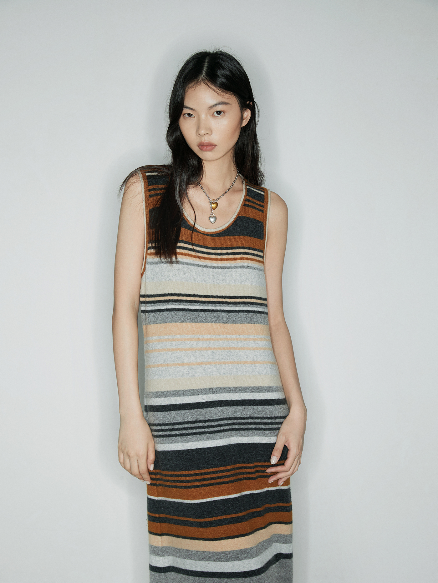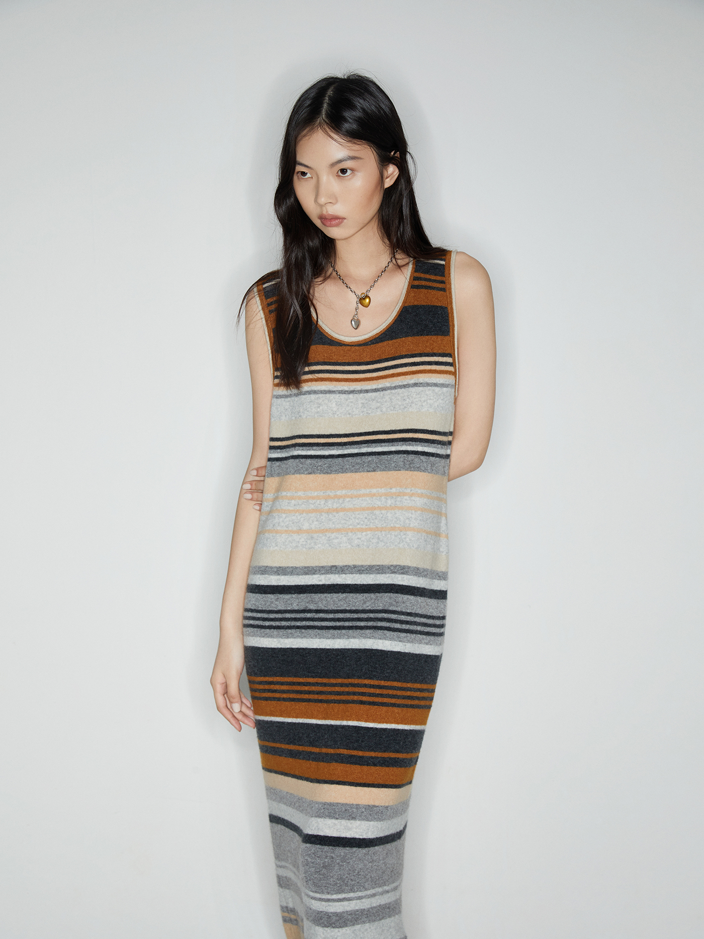 【滿減直降】致知 桃源 吊帶U領連衣裙2023秋新款高級針織條紋