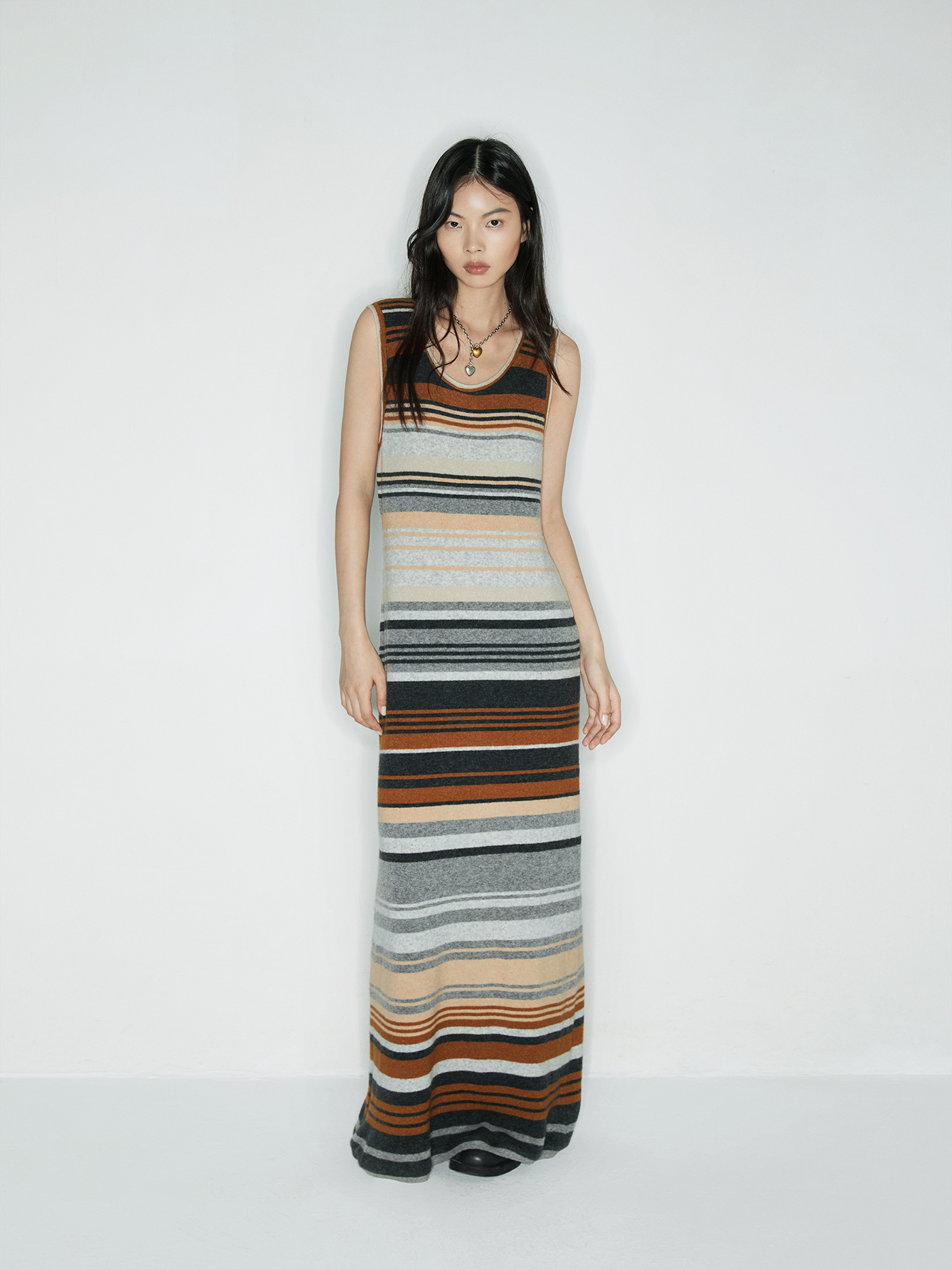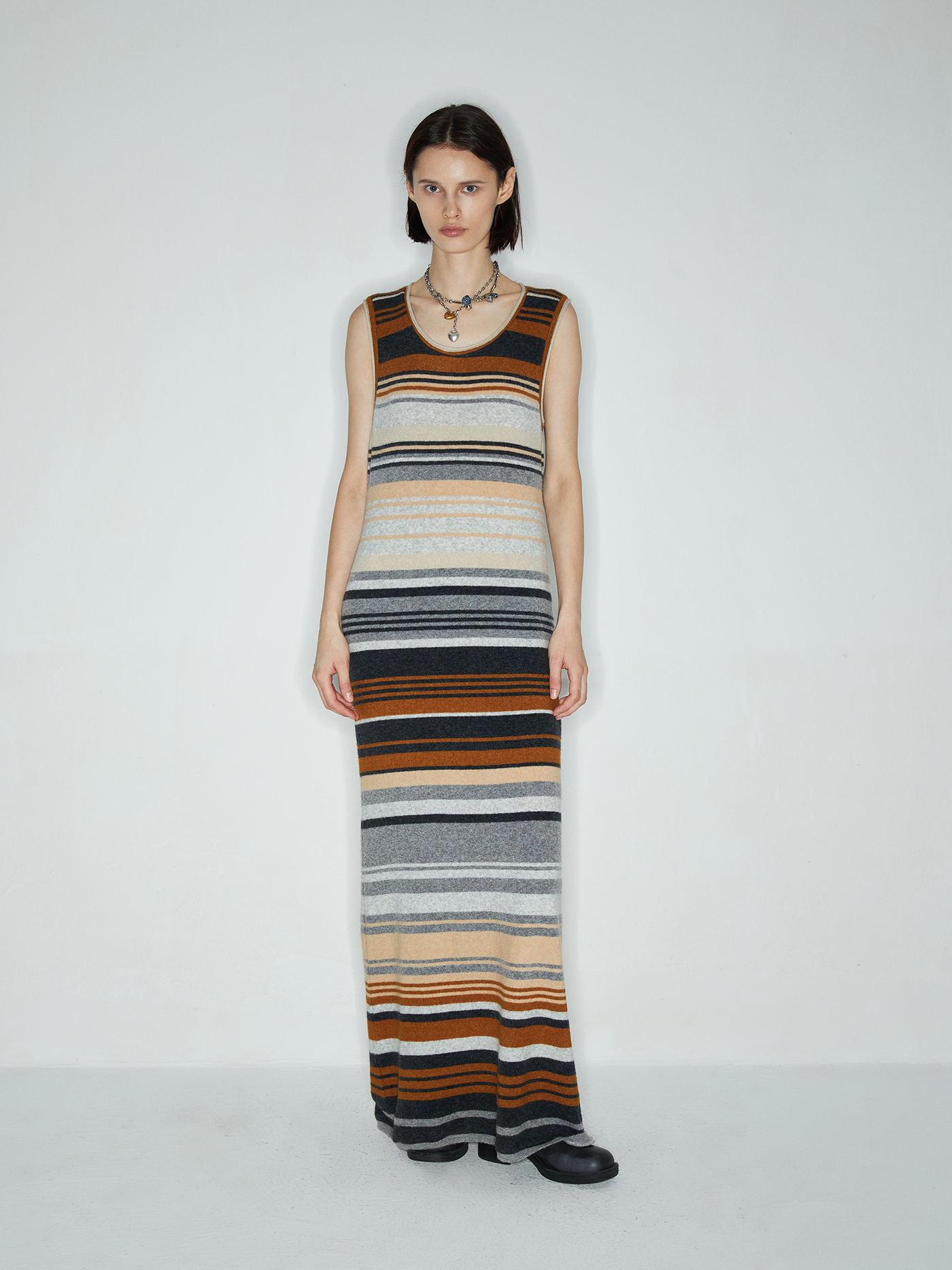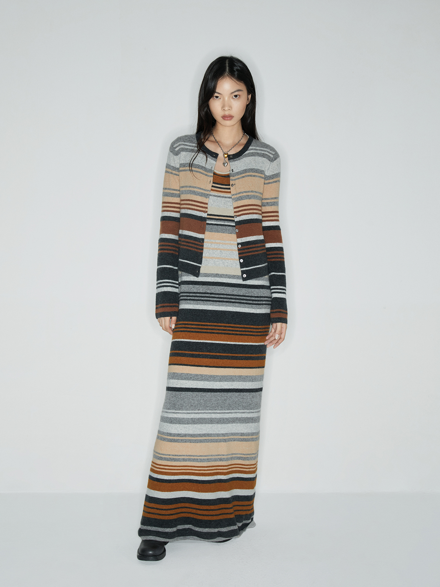 【滿減直降】致知 桃源 吊帶U領連衣裙2023秋新款高級針織條紋