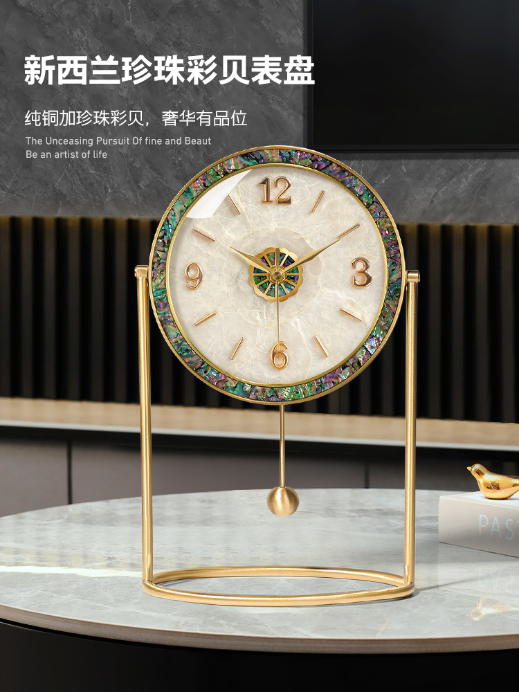 現代輕奢黃銅創意裝飾座鐘客廳家用玄關靜音桌面臺鐘歐式時尚擺鐘