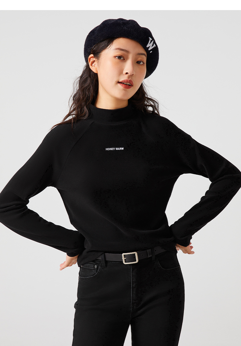 熱風2023年冬季新款女士半高領打底T恤基礎款簡約百搭長袖上衣女