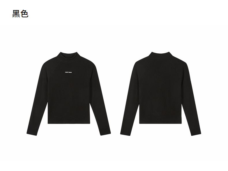 唐獅加絨打底衫女內搭2023秋冬新款圓領長袖T恤半高領黑色打底衣