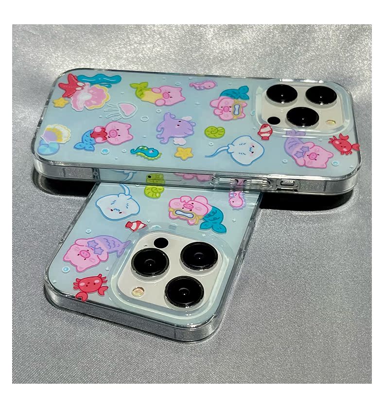 趣味可愛卡通小豬美人魚適用蘋果13手機殼iphone14ProMax防摔14pro新款15硅膠11女款12小眾13pro創意全包軟殼