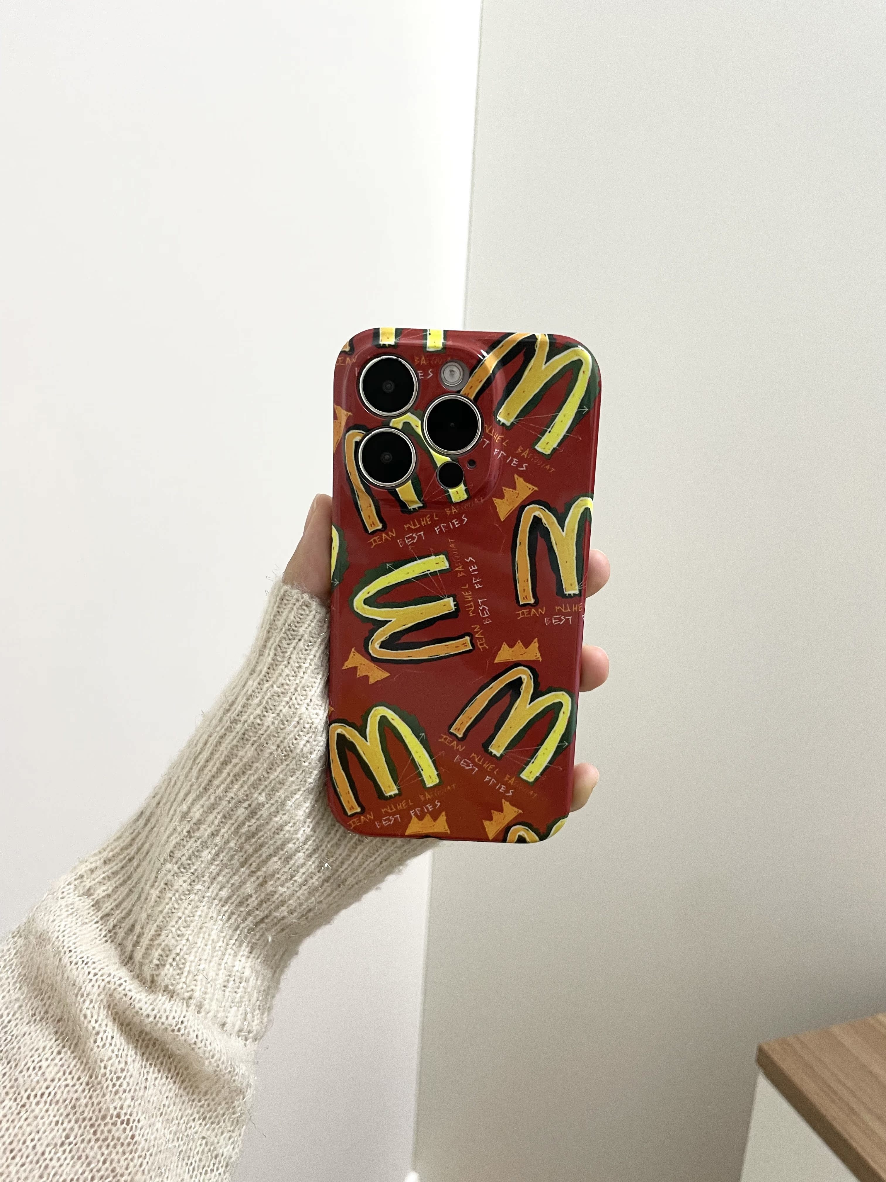 創意插畫薯條適用蘋果13proMax手機殼iPhone12pro/14pro全包防摔保護套14plus磨砂個性11proMax/XSMAX潮牌男