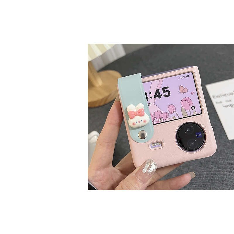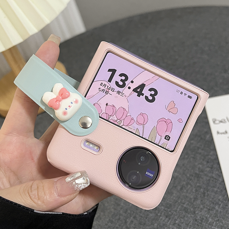 適用vivoxflip手機殼拼色腕帶保護殼flip折疊屏手機套可愛皮質外殼卡通兔子防摔保護套個性化輕薄手提小折疊