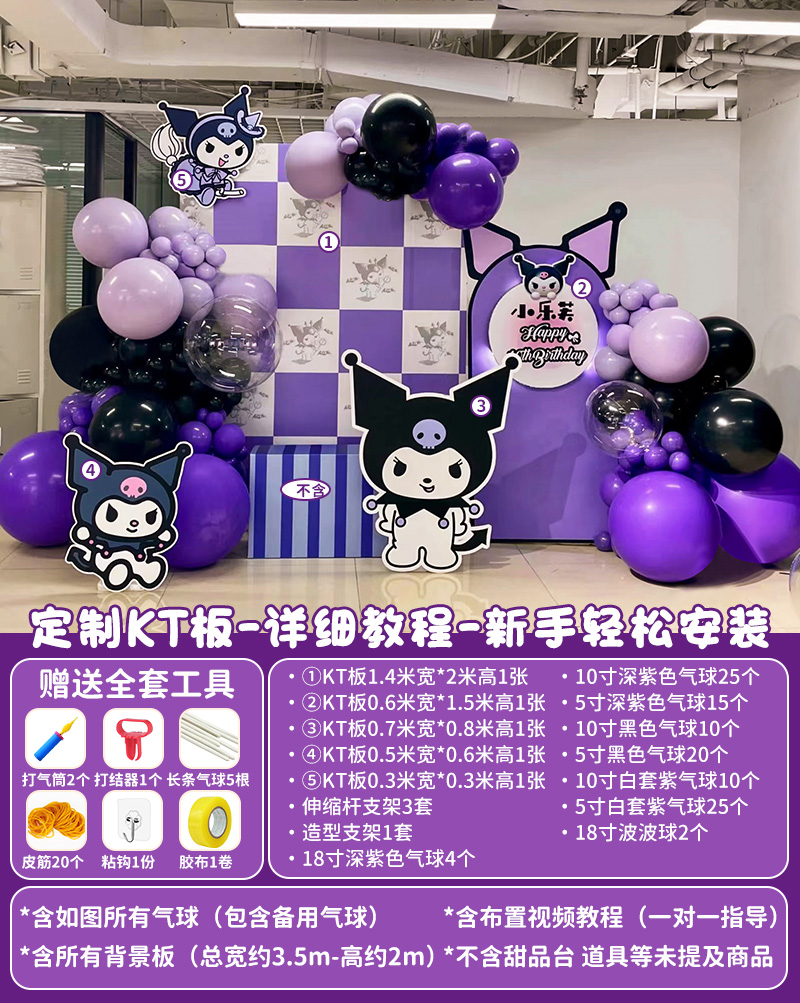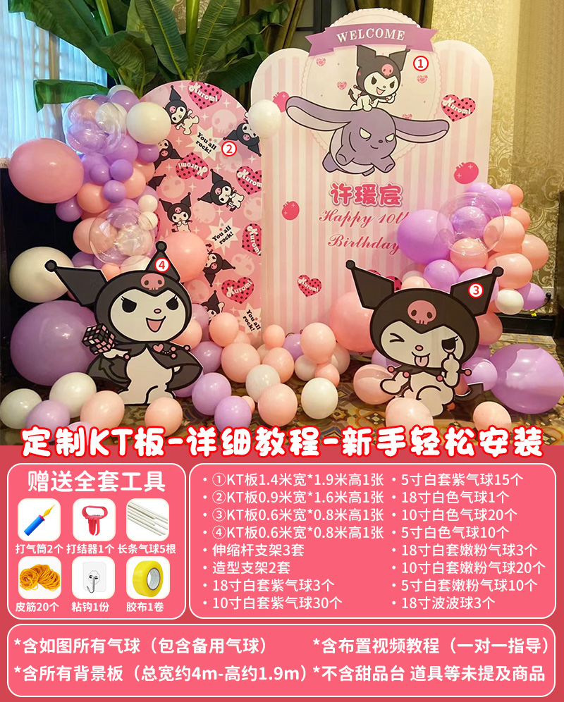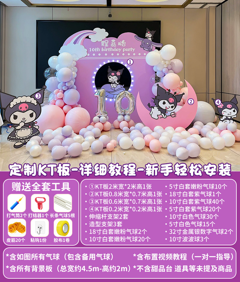 庫酷洛米生日十10周歲布置家里氣球場景裝飾兒童女孩kt板背景墻12