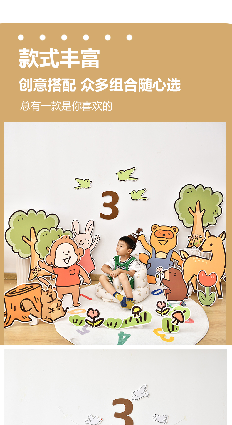 桌面KT板寶寶兒童生日百天滿月1周歲卡通拍照兔子動物裝飾布置