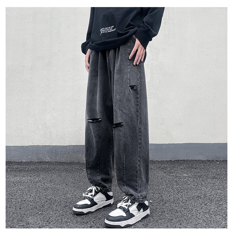 森馬集團GENIOLAMODE男生牛仔褲高級感闊腿復古破洞潮牌休閑長褲