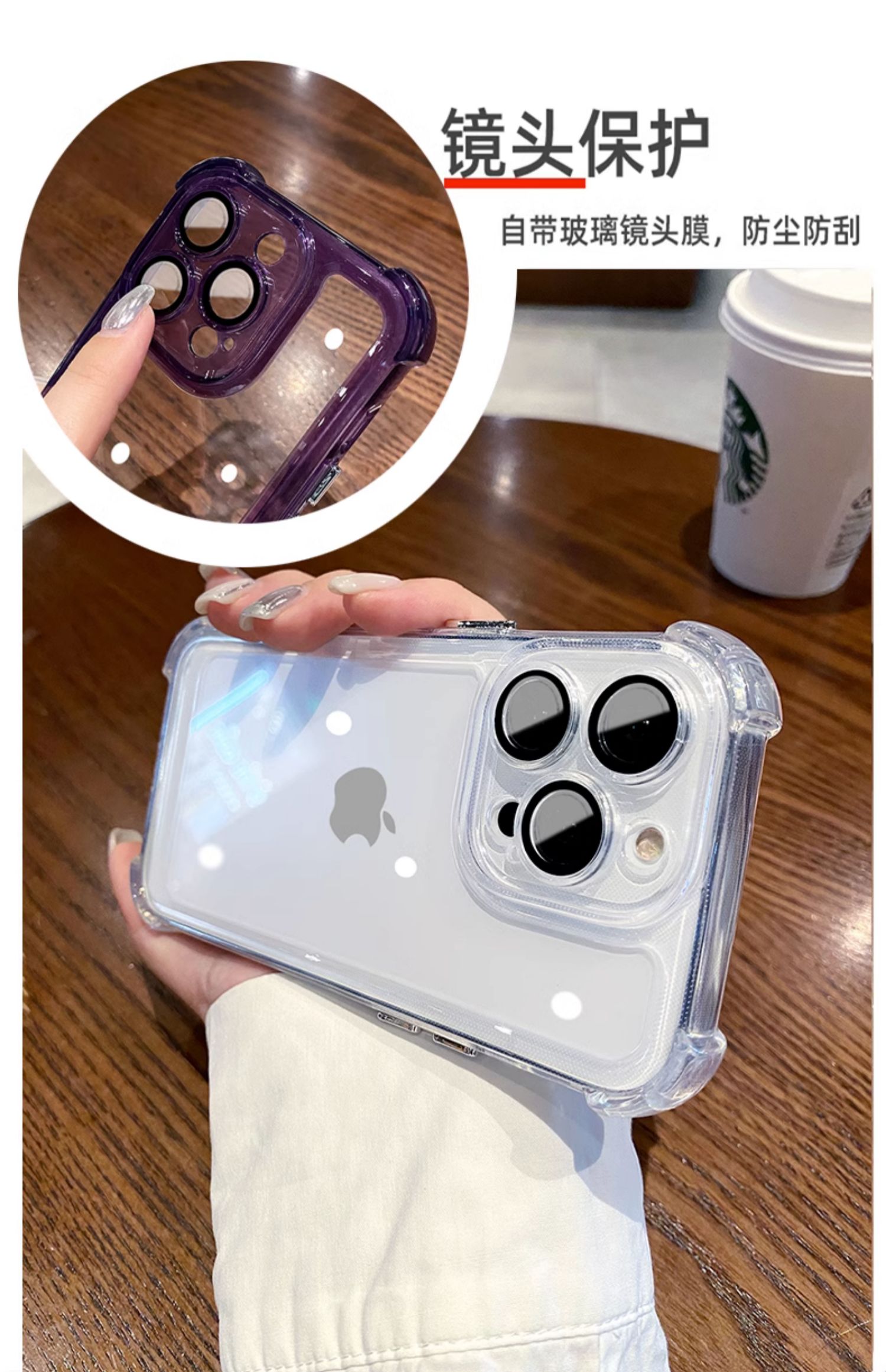 新款氣囊防摔適用蘋果15手機殼硅膠14promax帶鏡頭膜iphone15全包透明13pro高級感plus簡約13男女12保護套11