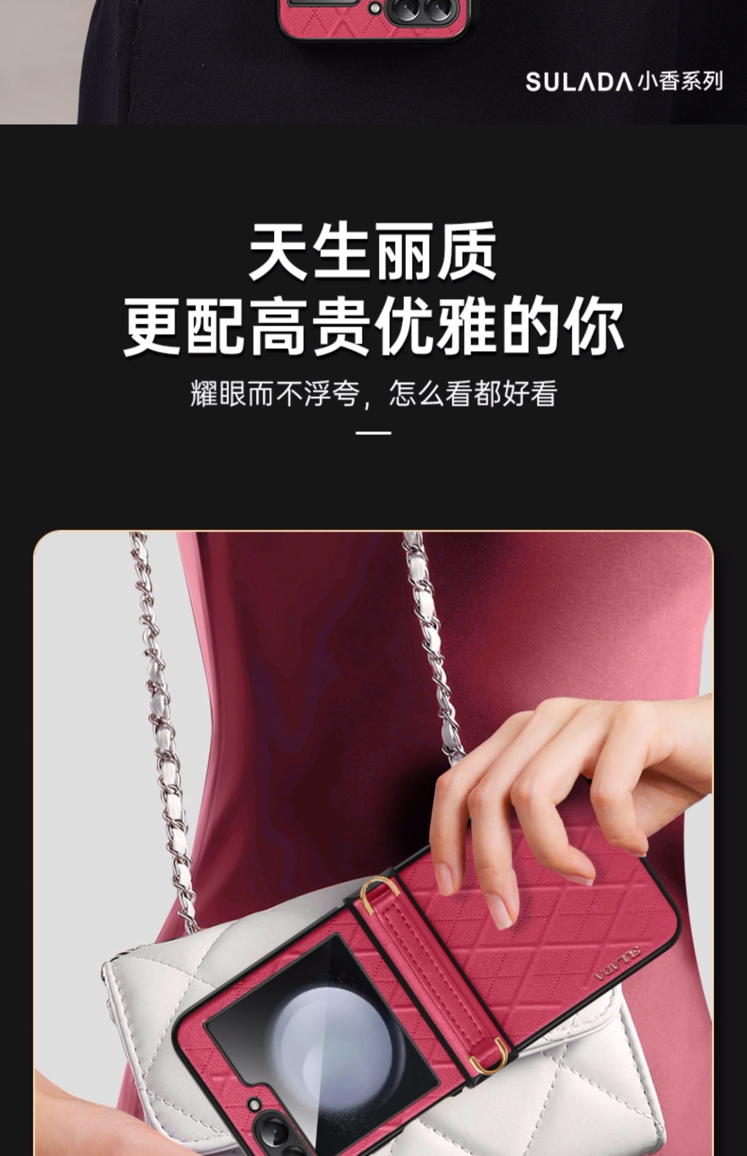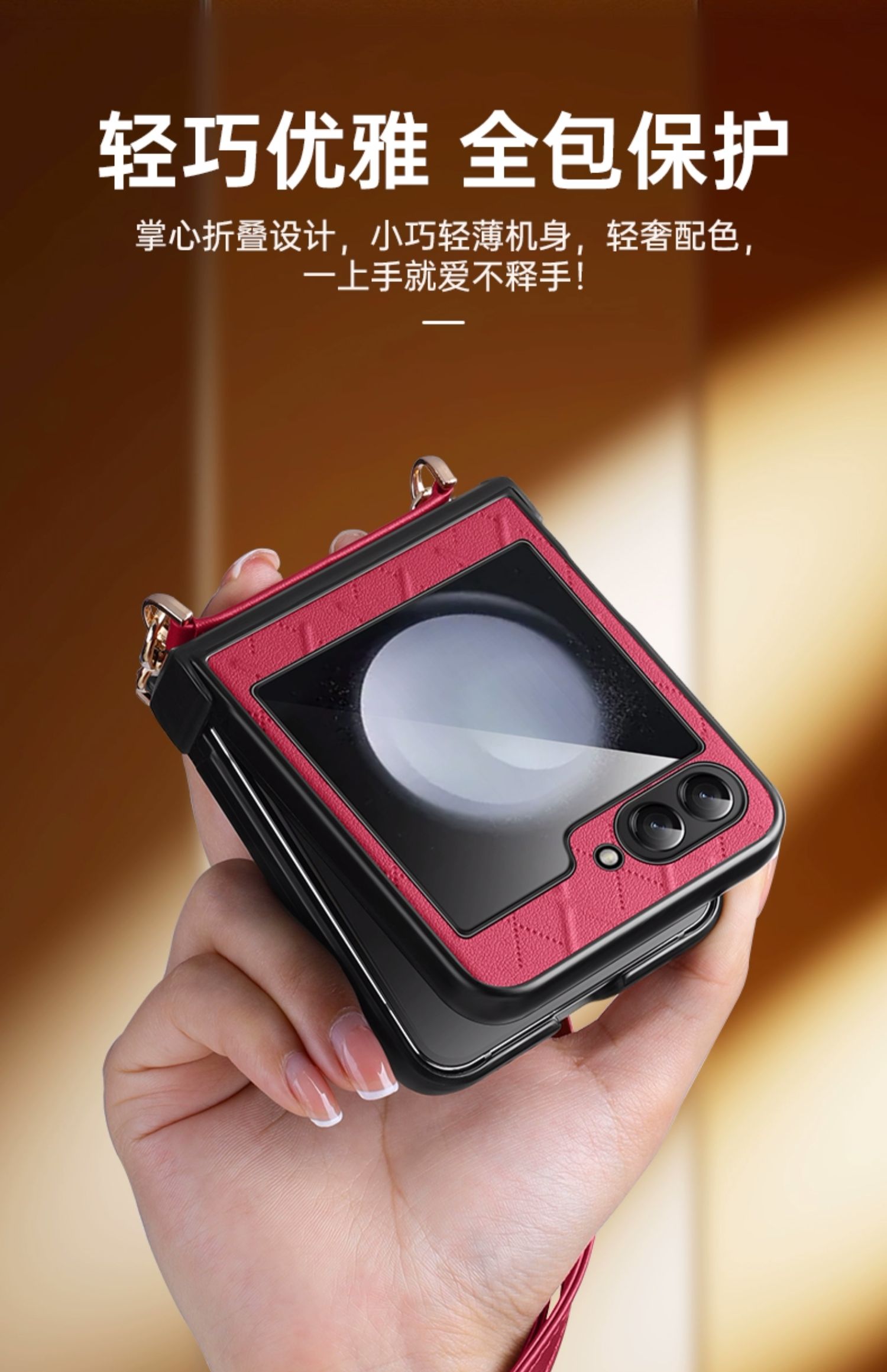 適用三星zflip5手機殼折疊屏新款女斜挎Galaxyw23flip鉸鏈全包保護套Z Flip4/3防摔小香風背帶斜跨掛繩高級感