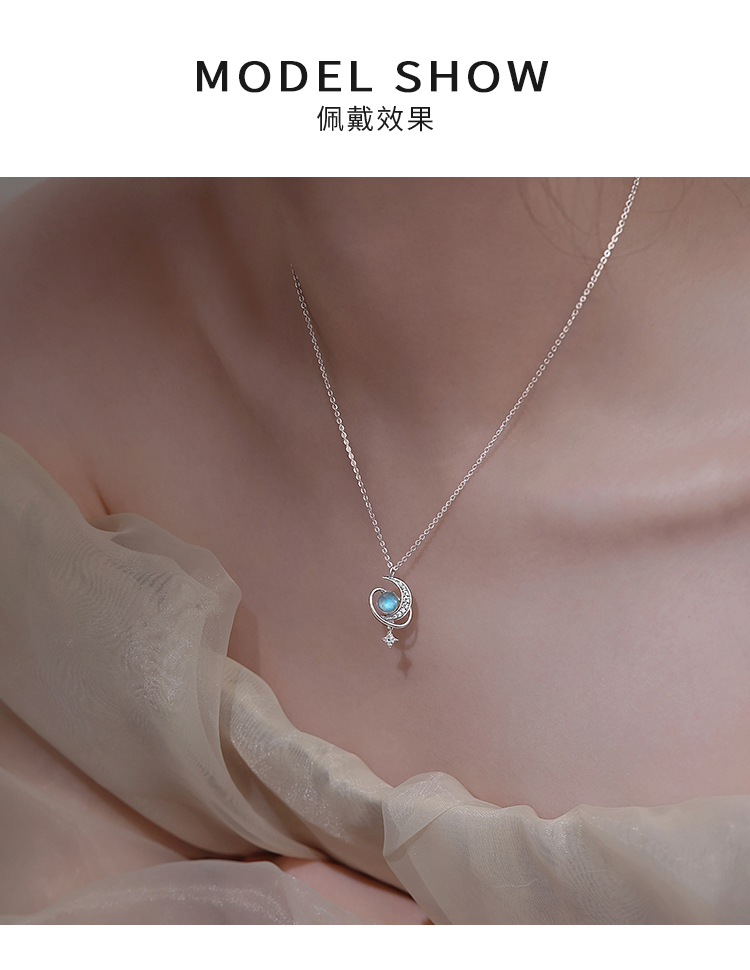 【巷南】925純銀月光石項鏈2023新款爆款小眾鎖骨鏈輕奢高級感女