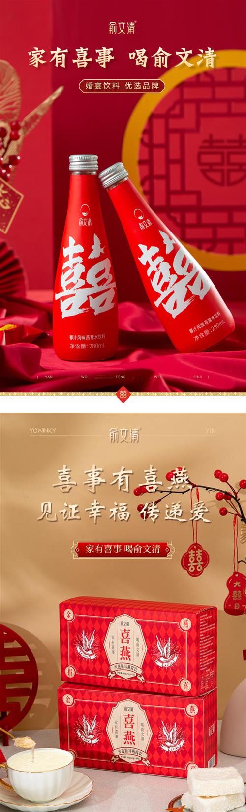 俞文清喜宴紅色囍婚禮訂婚椰汁燕窩水裝飾品伴手禮飲料飲品擺臺件