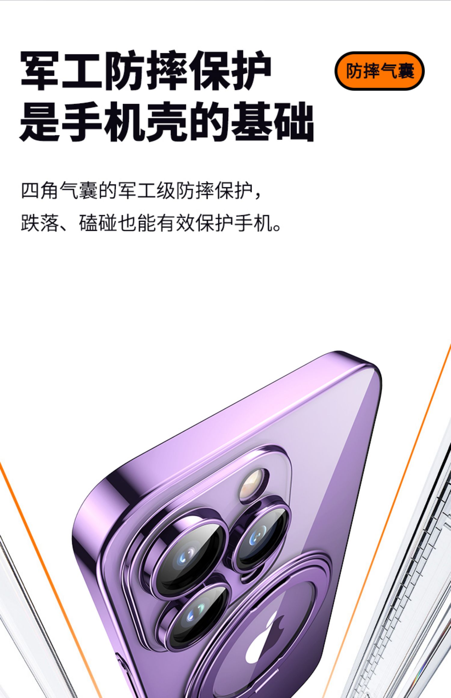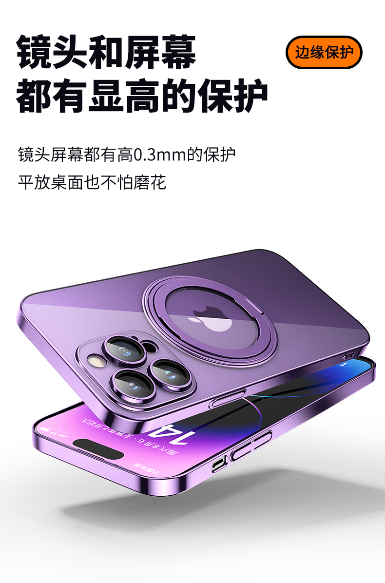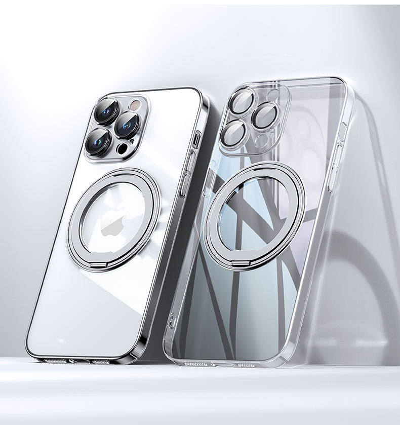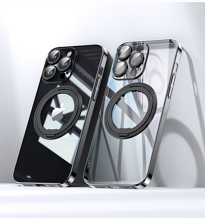 360°支架殼適用iPhone15promax手機殼自帶鏡頭膜新款電鍍透明蘋果13pro超薄保護套14mx奢華高級感磁吸13全包