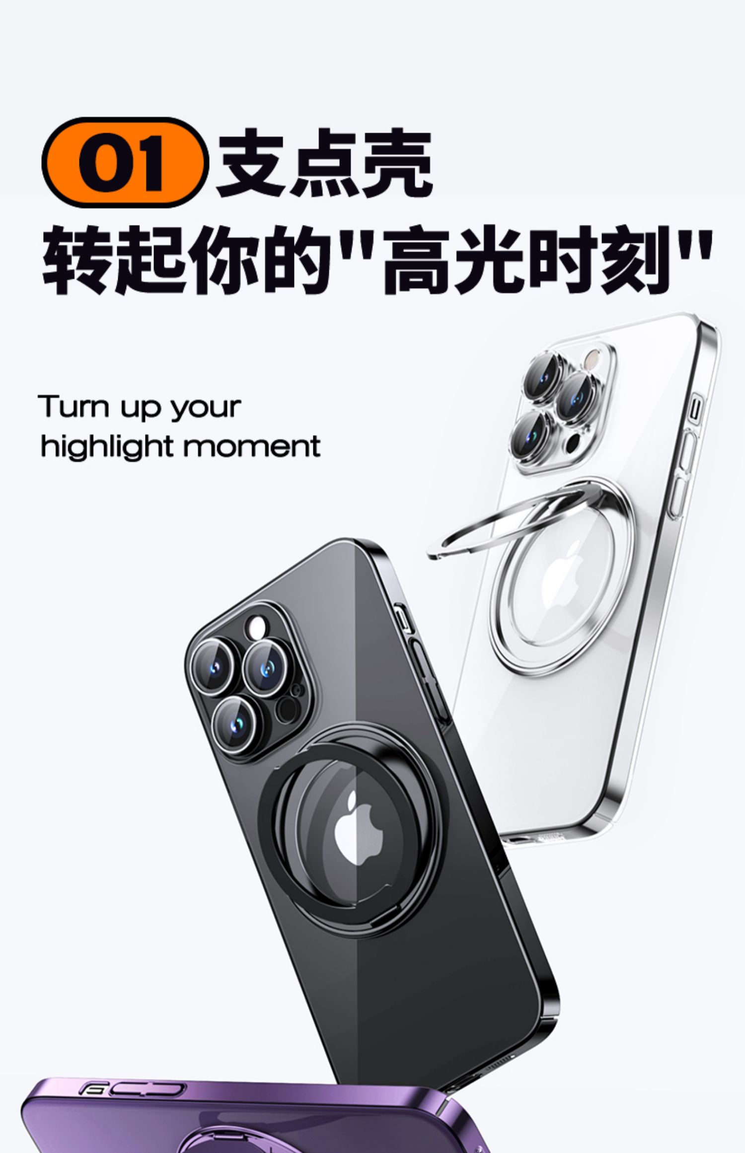 支點殼適用蘋果15Pro手機殼透明iphone13ProMax新款14Plus高級感12Magsafe磁吸帶支架11promax磨砂防摔保護套