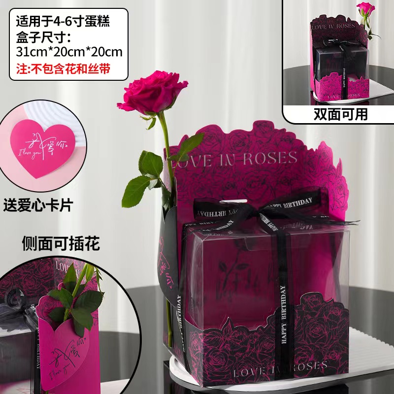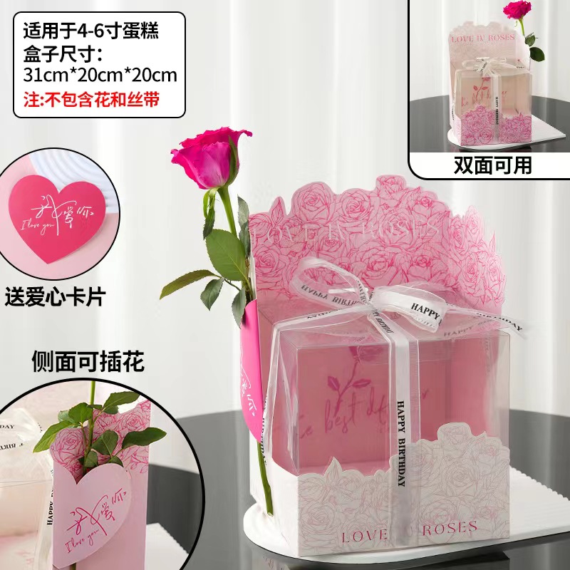 七夕情人節生日蛋糕盒4寸6寸情侶告白玫瑰花裝飾手提蛋糕包裝盒子