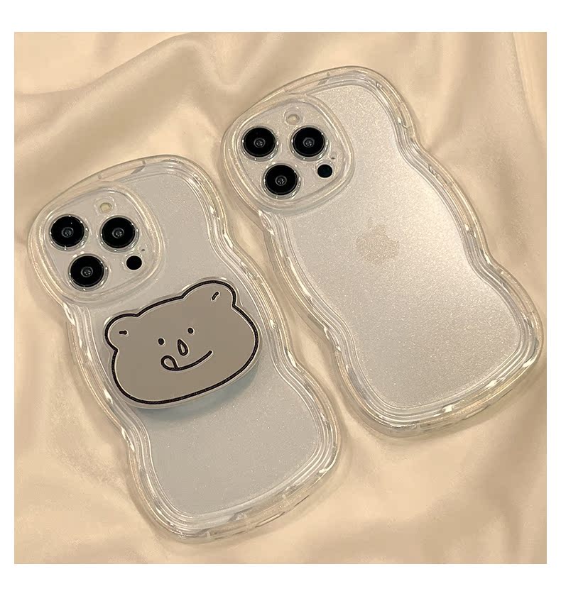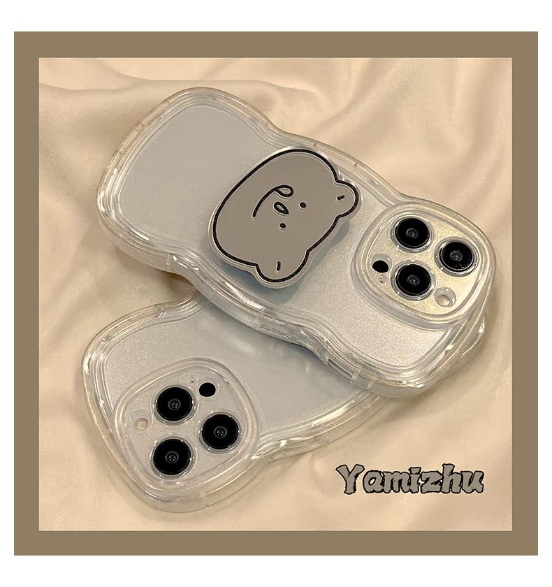 磨砂透明小熊鏡面支架適用蘋果14手機殼iPhone13ProMax新款14Pro女款12防摔11硅膠15Pro簡約小眾創意全包軟殼