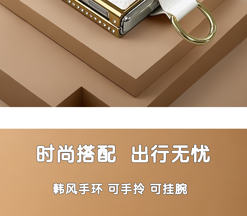 小香風適用華為pockets手機殼奢華電鍍鑲鉆閃寶盒折疊屏高級感皮質手提指環防摔p50pocket斜挎掛繩長背帶鏈條