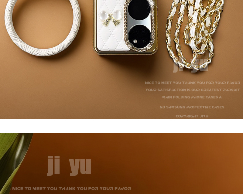 適用華為P50Pocket手機殼防摔高擋時尚珍珠手鏈女款新款p50寶盒折疊屏保護套網紅手提式菱格小香風