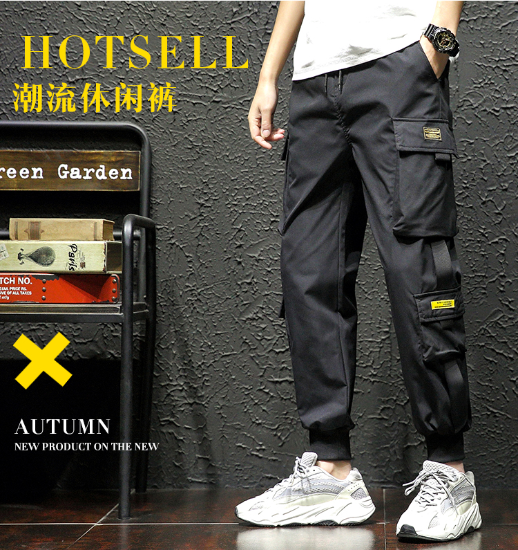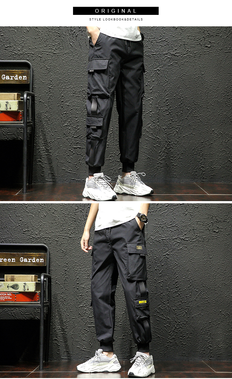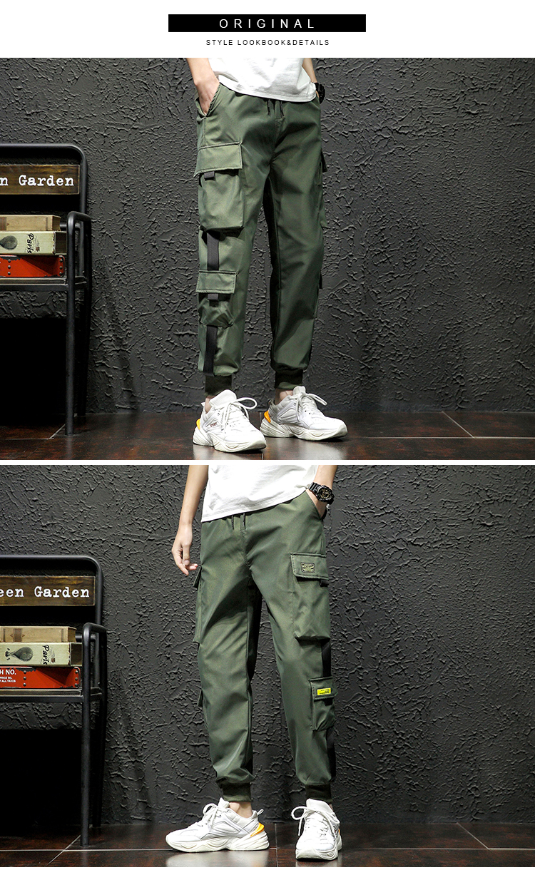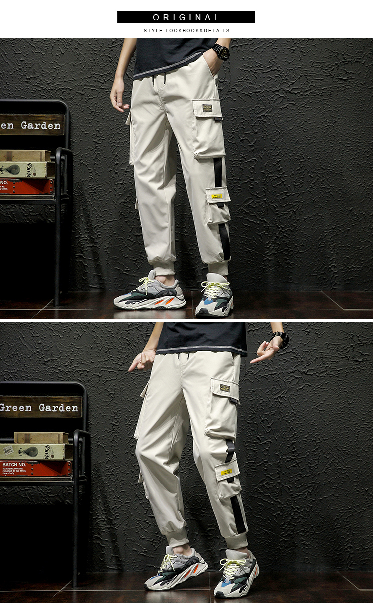 飄帶機能傘兵男士夏季痞帥直筒褲子