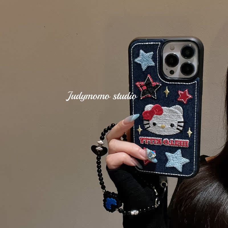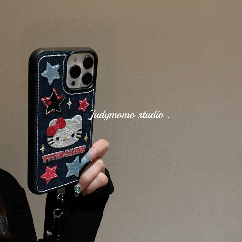 韓國ins復古刺繡牛仔KT軟殼適用iPhone14手機殼13promax蘋果12新款鏈條藍11女