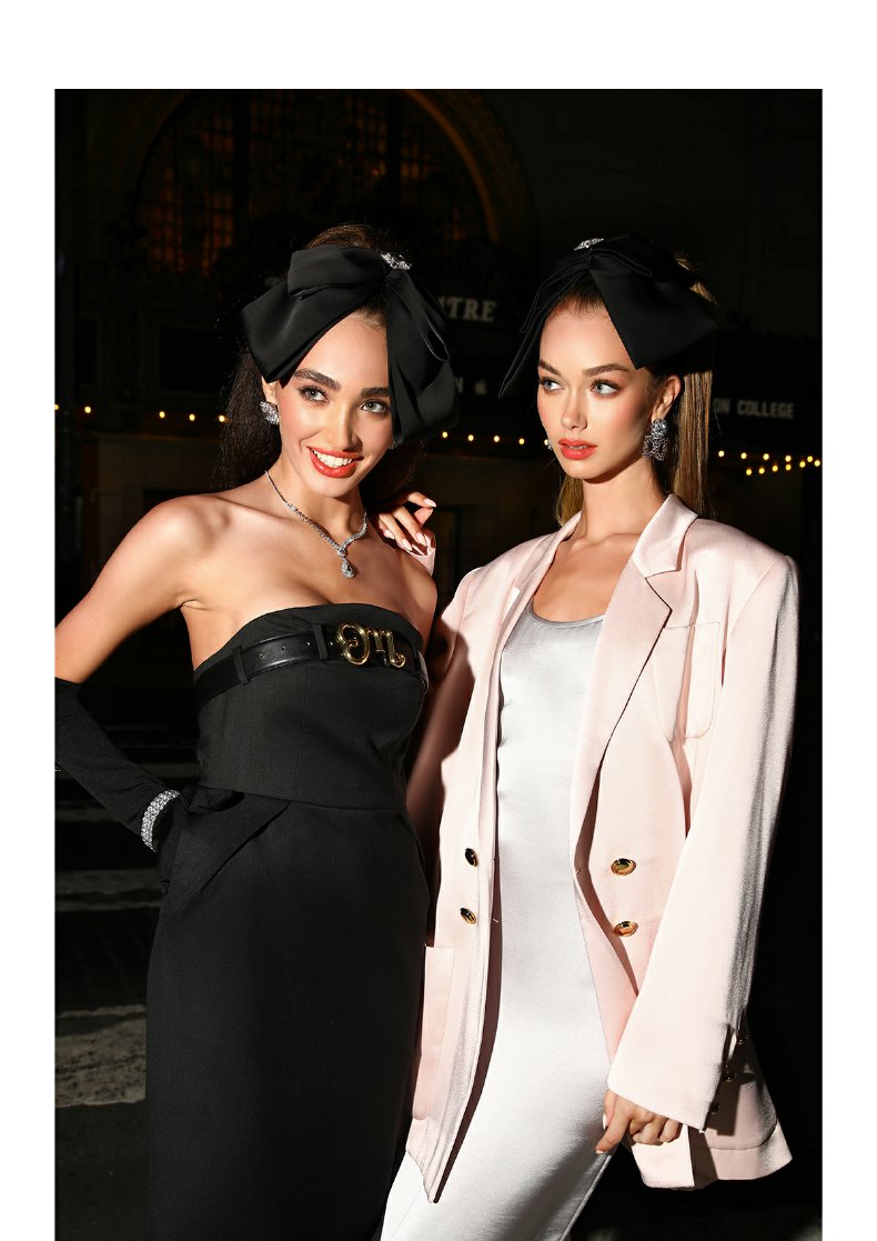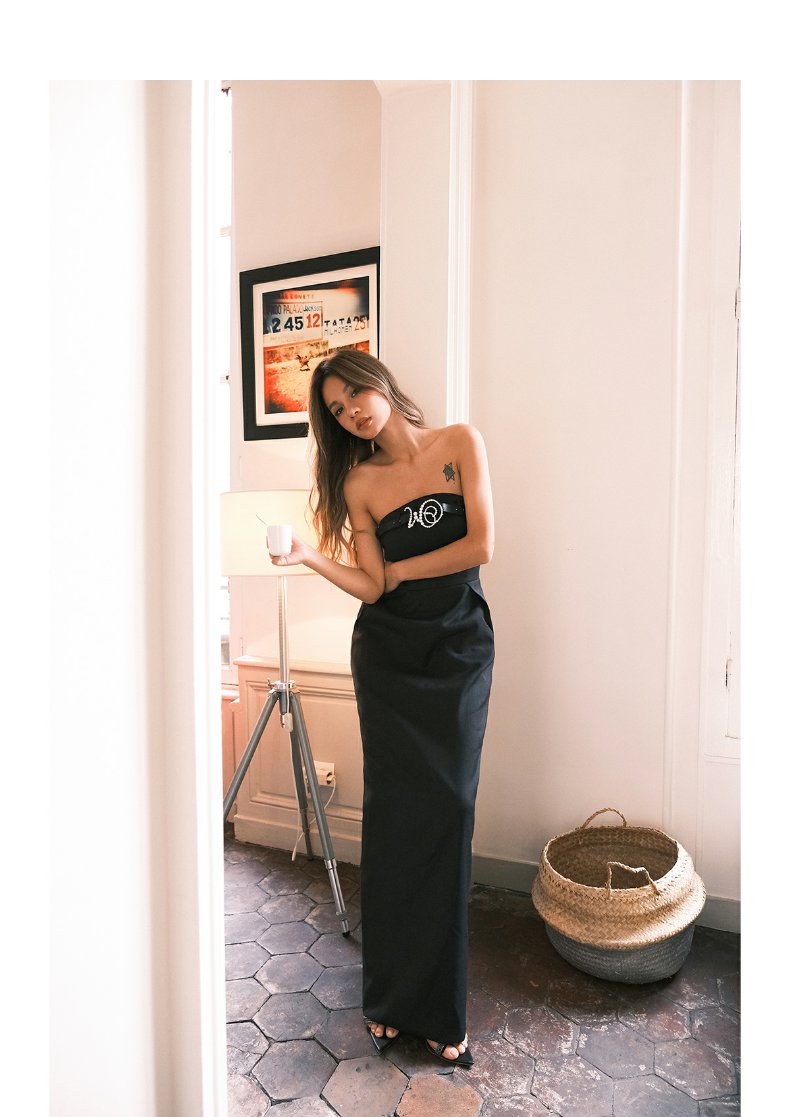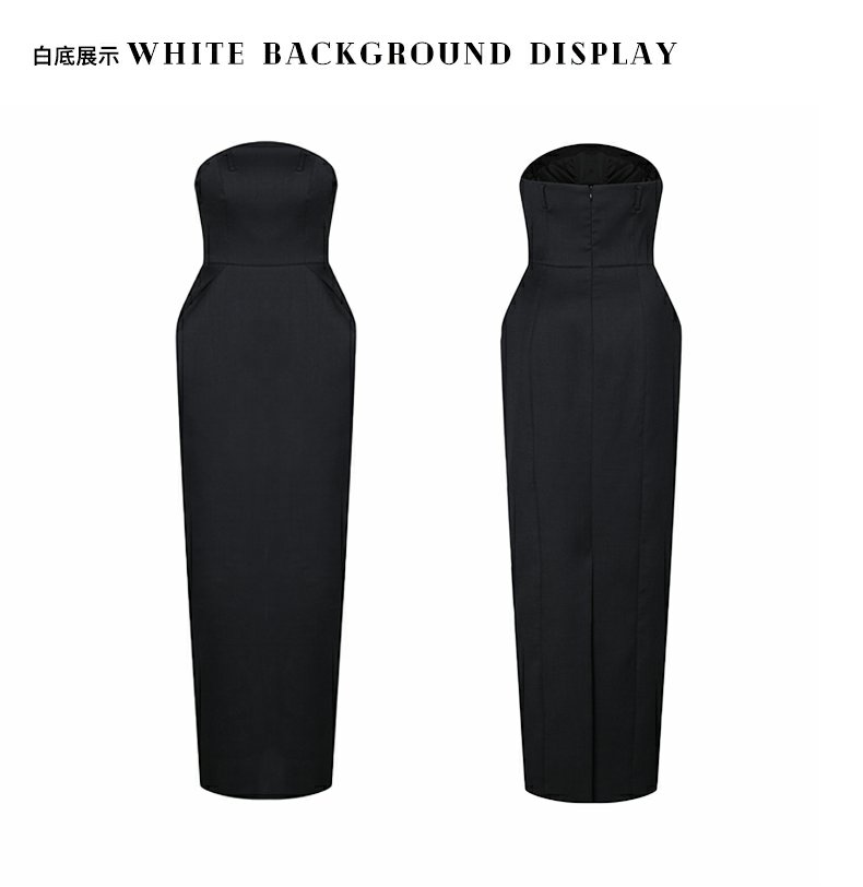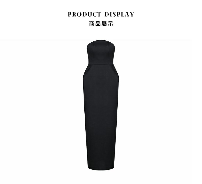 MasionWester23秋季新款女裝美式復古抹胸黑色西裝禮服插兜連衣裙