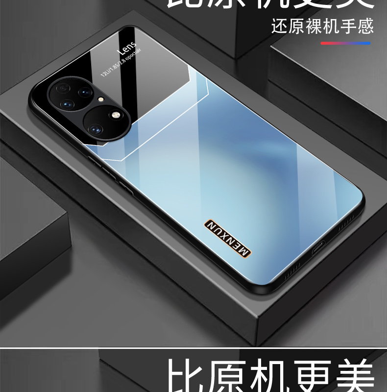 適用于華為p50e手機殼玻璃男女新款個性網紅創意保護套鏡面時尚華為p50E潮牌硅膠手機套簡約高顏值全包邊外殼