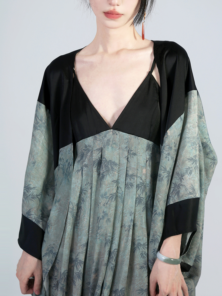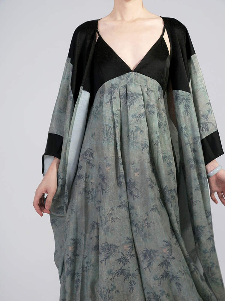青田緒一【?溪?】2023年秋季新中式國風長款吊帶連衣裙兩件套裝