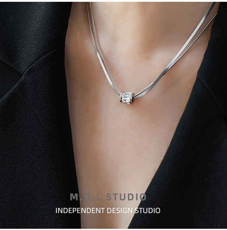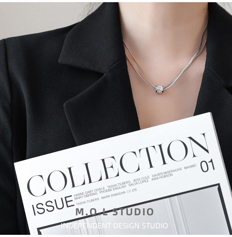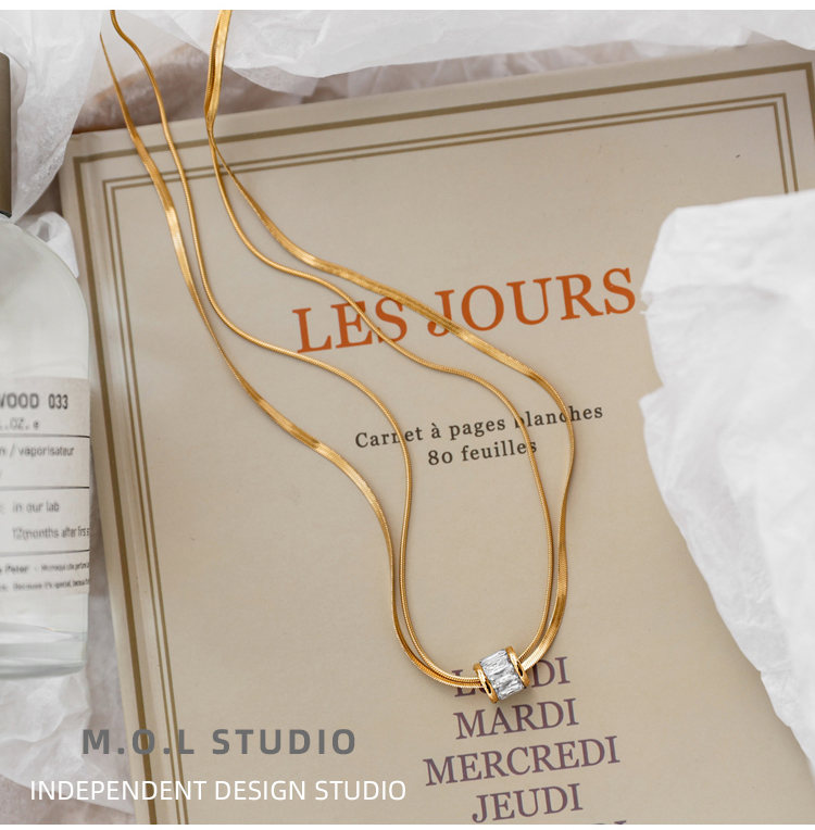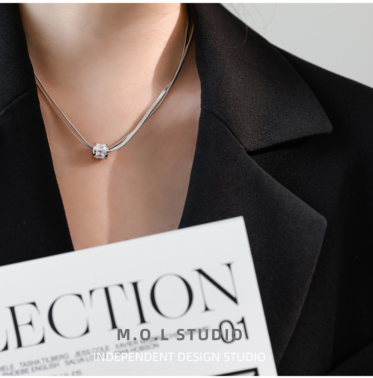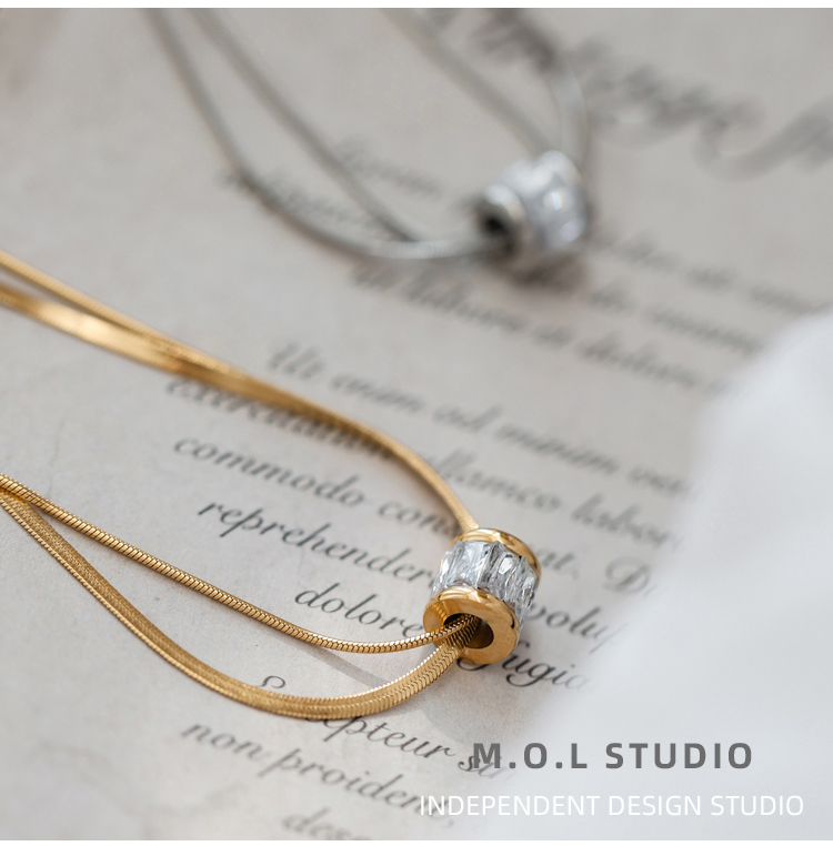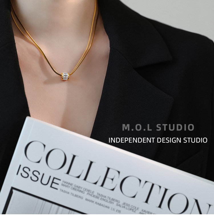 不掉色~韓國高級輕奢蛇骨雙線圓柱水晶項鏈女鎖骨鏈毛衣鏈禮物