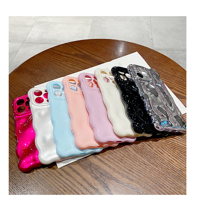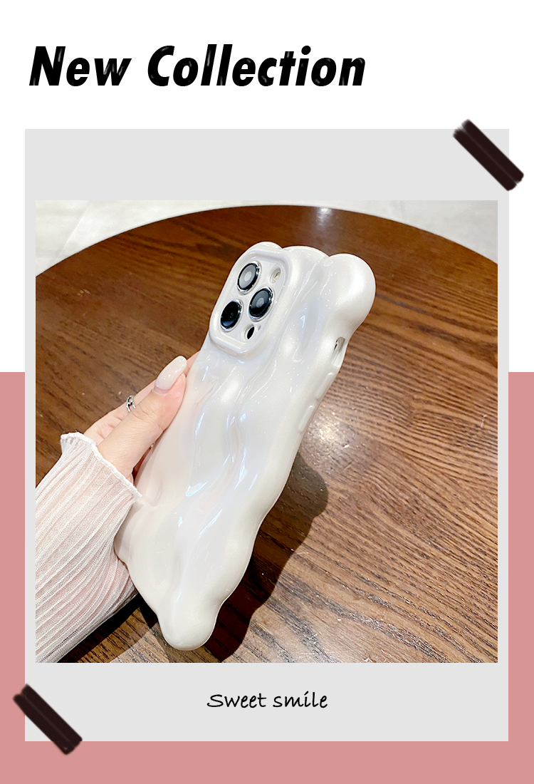 愛品淘ins風 波浪氣泡閃粉珠光白適用于蘋果15手機殼女iphone14promax高級感13pro潮牌時尚12pm防摔11創意