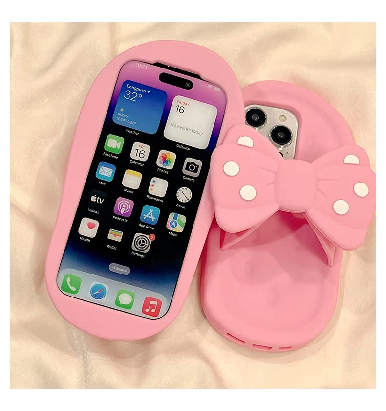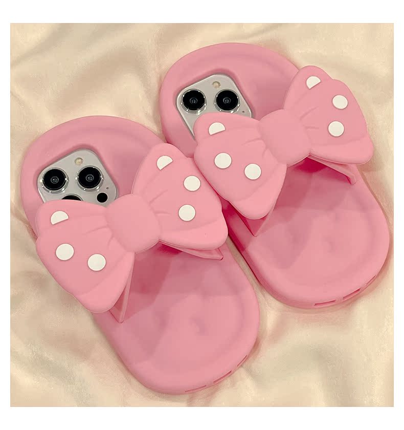 ins風粉色拖鞋立體蝴蝶結適用蘋果14手機殼iPhone13ProMax新款14Pro女款12防摔11全包15Pro創意硅膠網紅軟殼