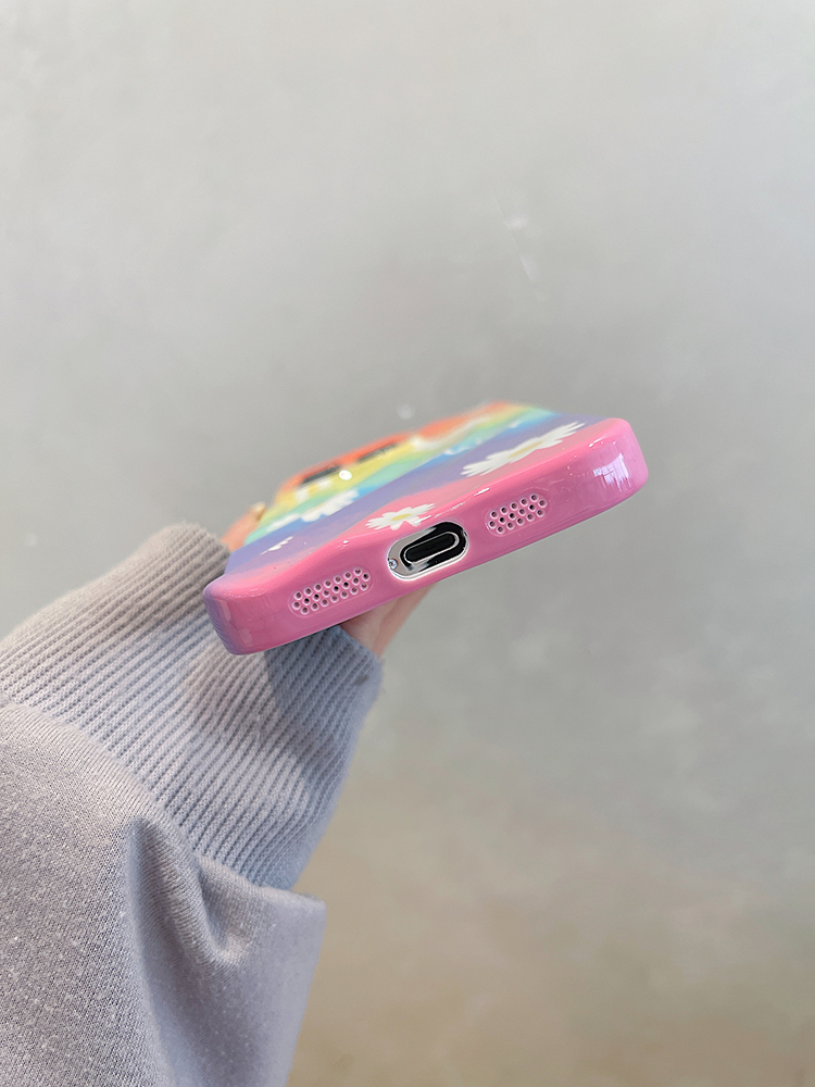 日韓ins漸變彩虹英文雛菊適用蘋果14promax手機殼iphone13pro新款12水波紋菲林11可愛max小眾高級感保護套女