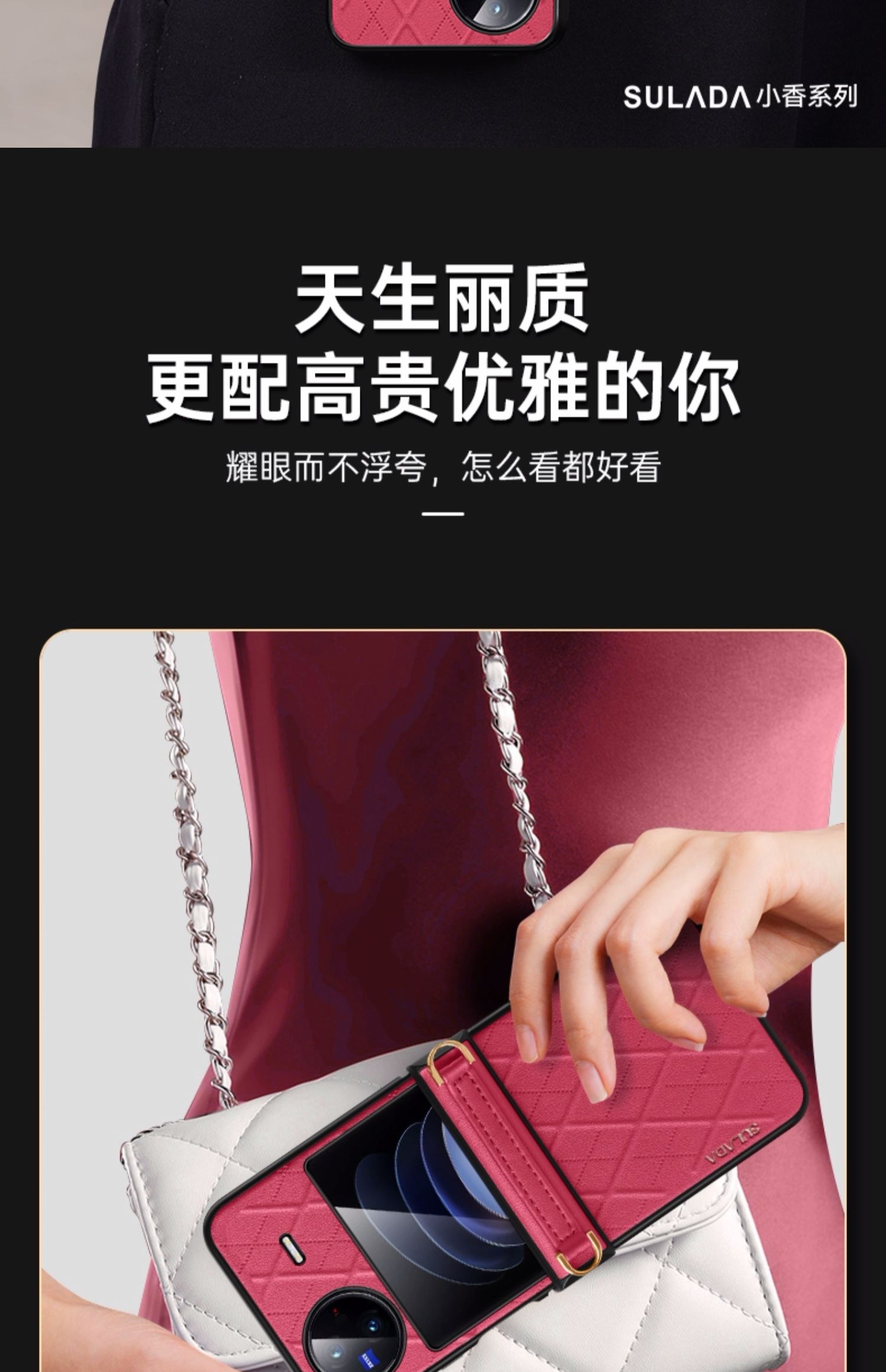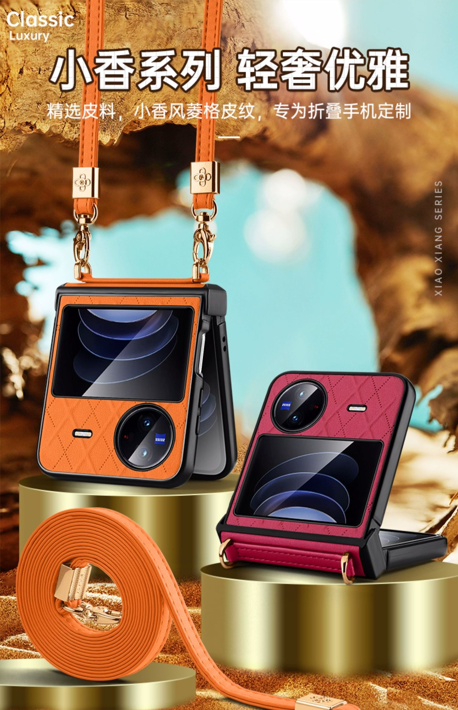 適用vivoXflip手機殼折疊屏斜挎中軸鉸鏈全包vivoXfilp保護套新款女防摔vivo x flip小香風背帶斜跨掛繩高級