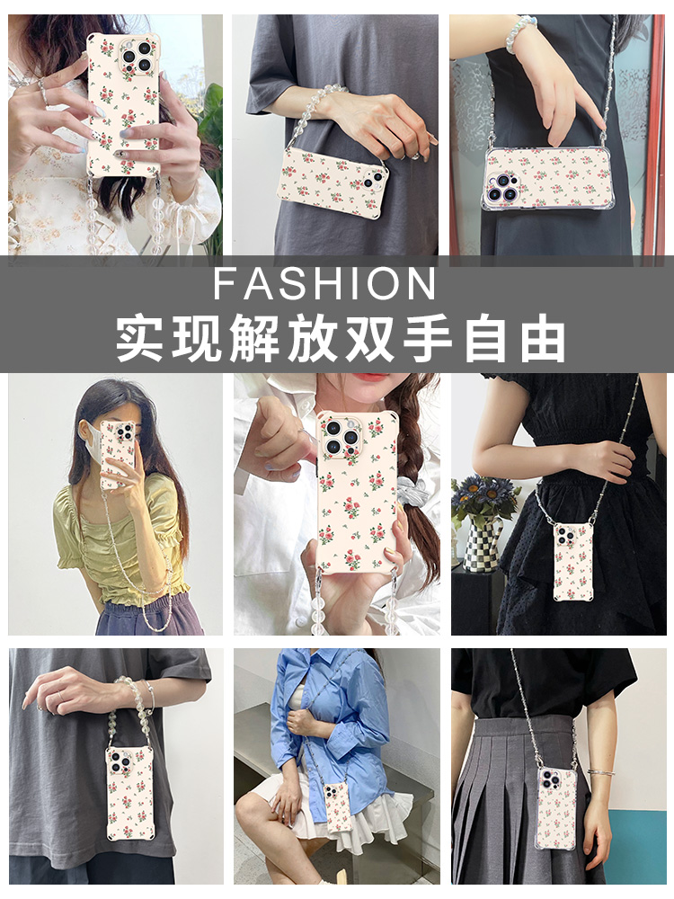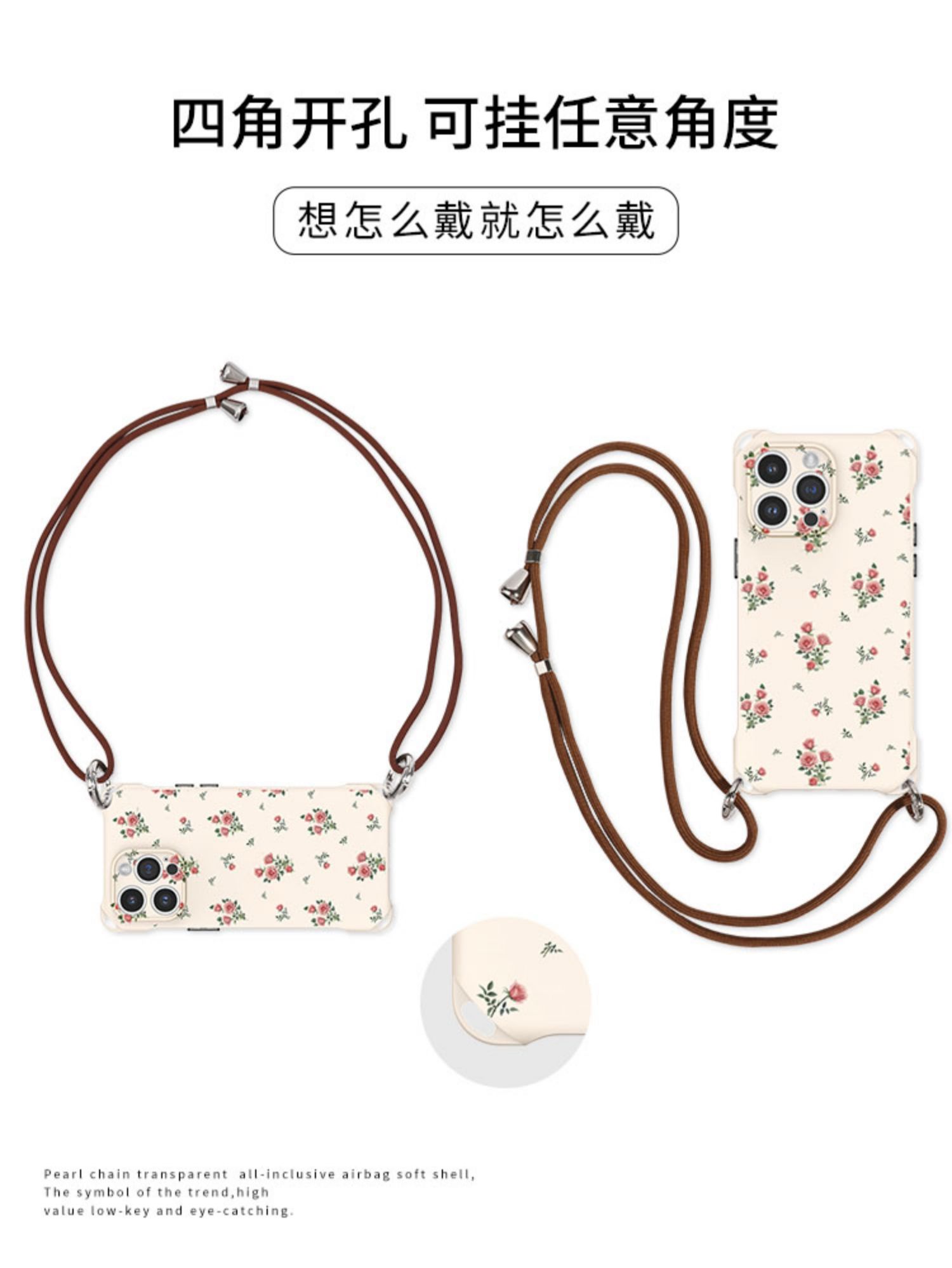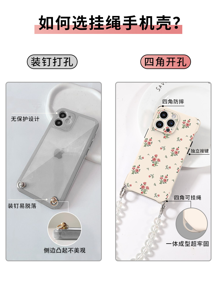 【趙露思同款】蘋果15手機殼掛繩斜挎適用iphone14promax四角開孔13花朵韓系11鏈條x掛繩手腕12小眾背帶斜挎