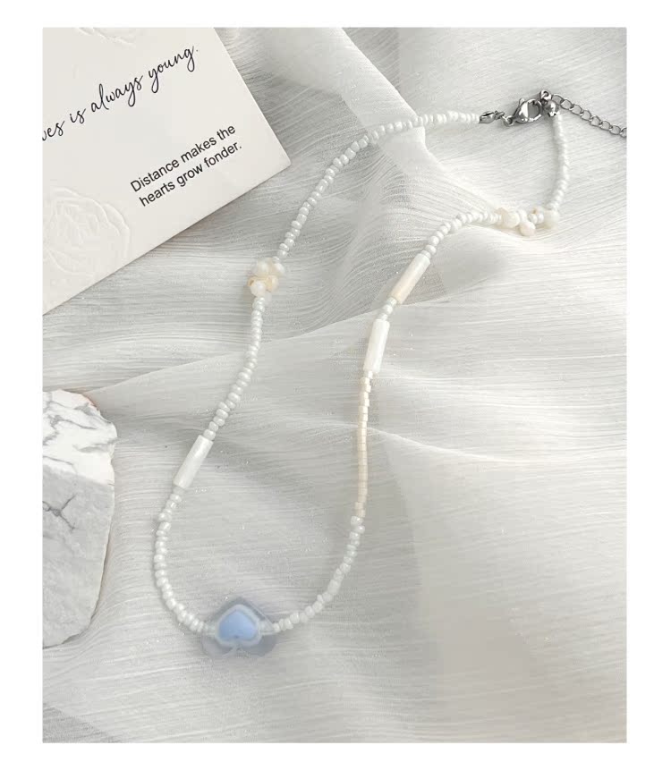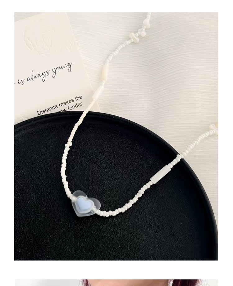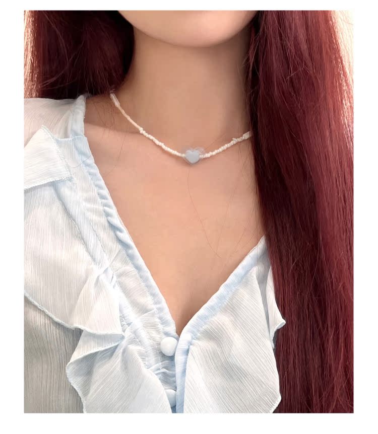 KANSAI新款磨砂愛心串珠項鏈女輕奢小眾配飾高級感氣質頸鏈鎖骨鏈