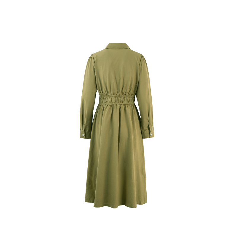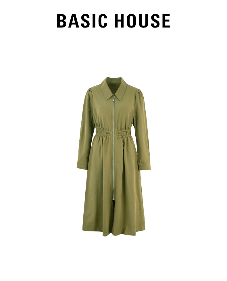 Basic House/百家好小個子收腰襯衫裙2023秋冬長袖氣質連衣裙女