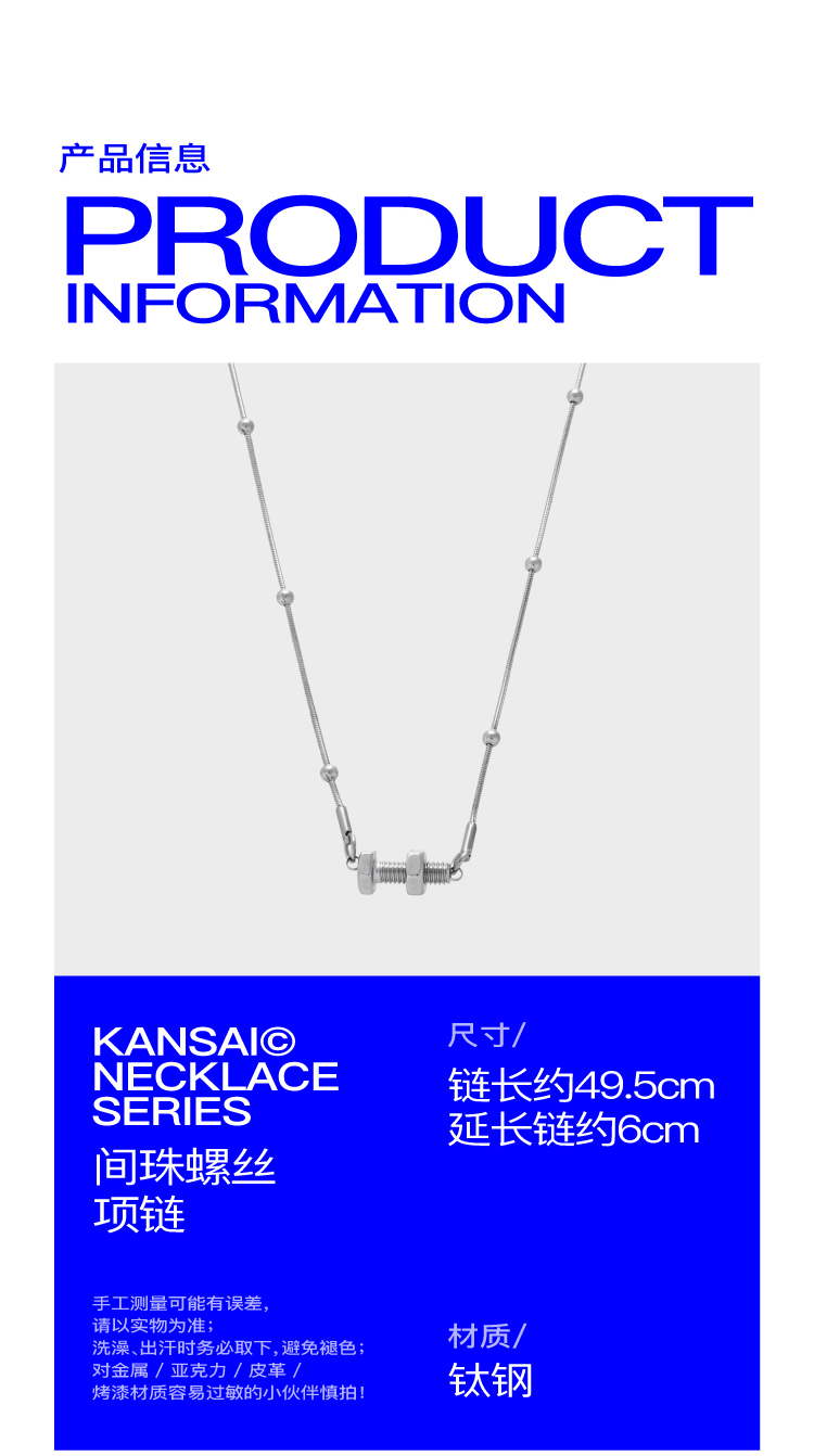 KANSAI創意間珠螺絲項鏈男女鈦鋼個性小眾學生酷潮流配飾日韓飾品