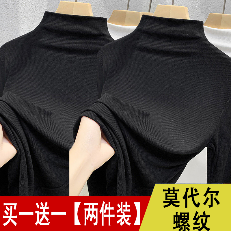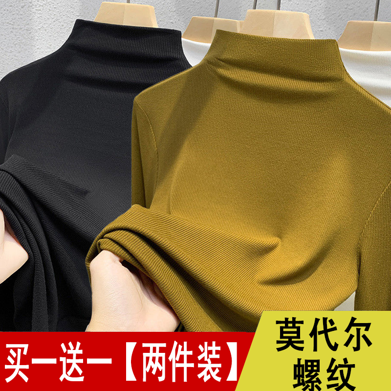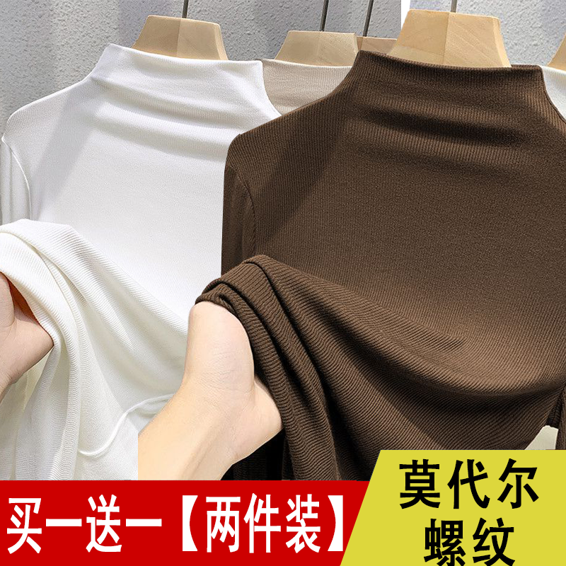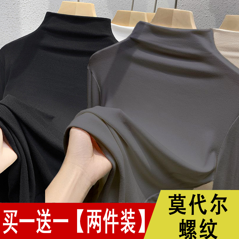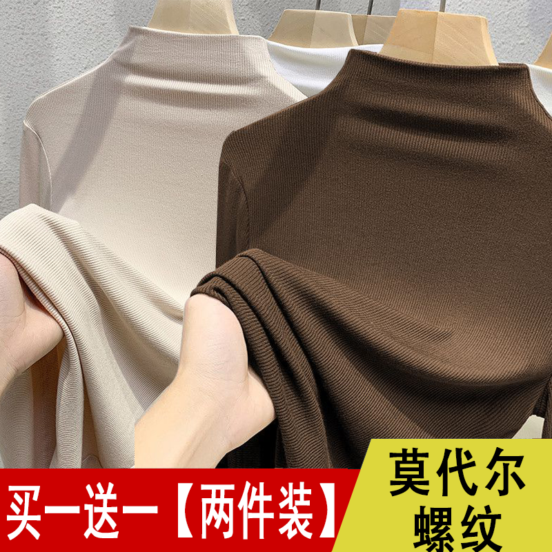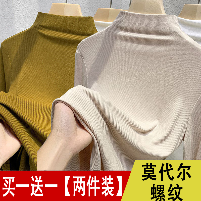 單/兩件裝 莫代爾半高領打底衫女春秋新款螺紋內搭長袖T恤女上衣