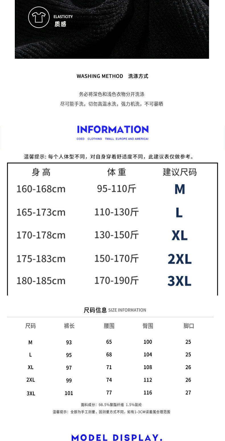 森馬集團GENIOLAMODE黑色休閑褲男春秋季薄款高腰松緊字母長褲潮