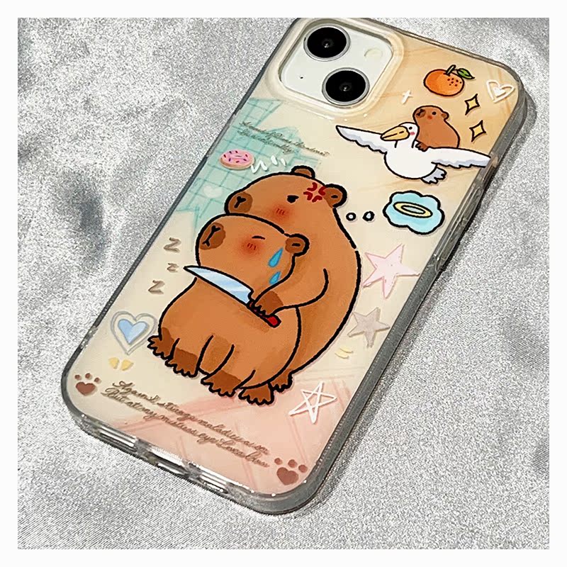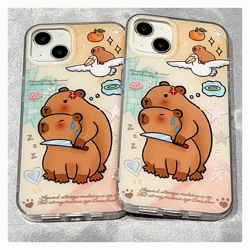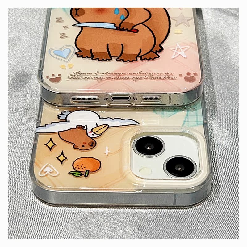 可愛趣味水豚適用蘋果14promax手機殼iphone13女款14pro新款12可愛卡通創意網紅潮11硬殼13pro防摔15pro雙層