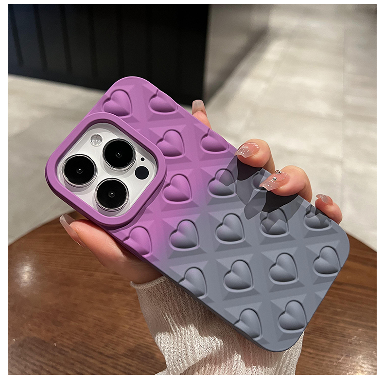 umj【防摔減震】漸變色立體愛心適用iphone15手機殼蘋果14proMax簡約風14軟硅膠13全包防摔12高級11保護套女