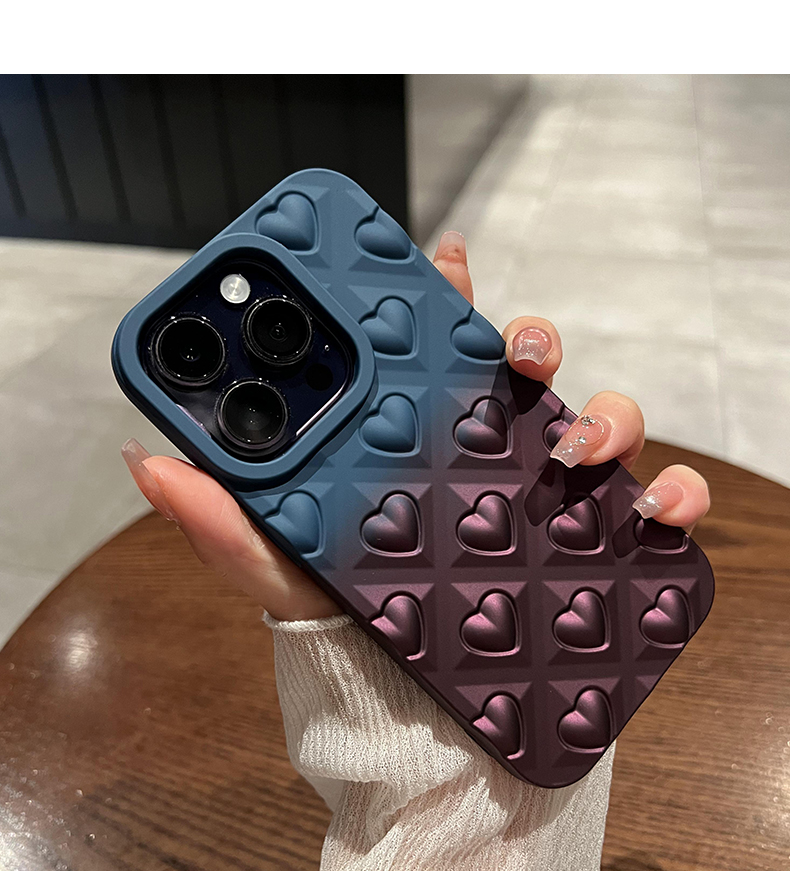 umj【立體愛心】漸變色磨砂軟殼適用iphone15pro手機殼蘋果14proMax簡約高級13個性12全包防摔硅膠保護套女潮