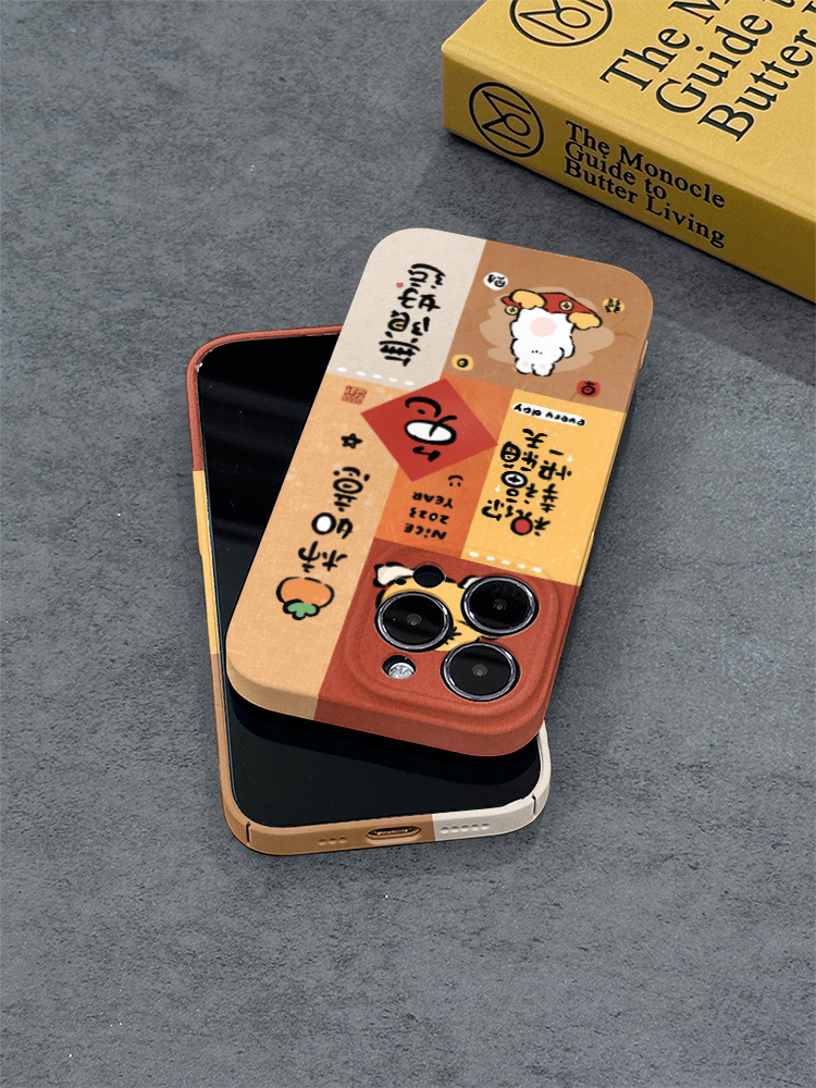 焦茶色涂鴉適用iPhone13ProMax菲林磨砂手機殼14Pro硬殼蘋果12Pro保護套個性創意簡約新款iPhone11男女款情侶