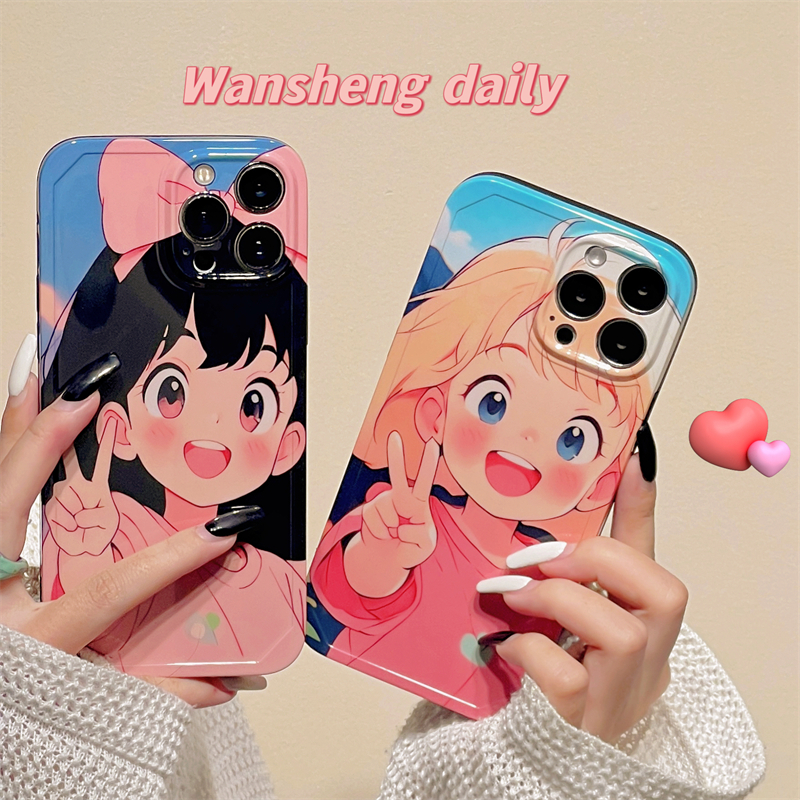玩勝 日系卡通可愛動漫比耶女孩iphone14promax蘋果13手機殼11新款14pro女12閨蜜14pm全包硅膠創意防摔保護套